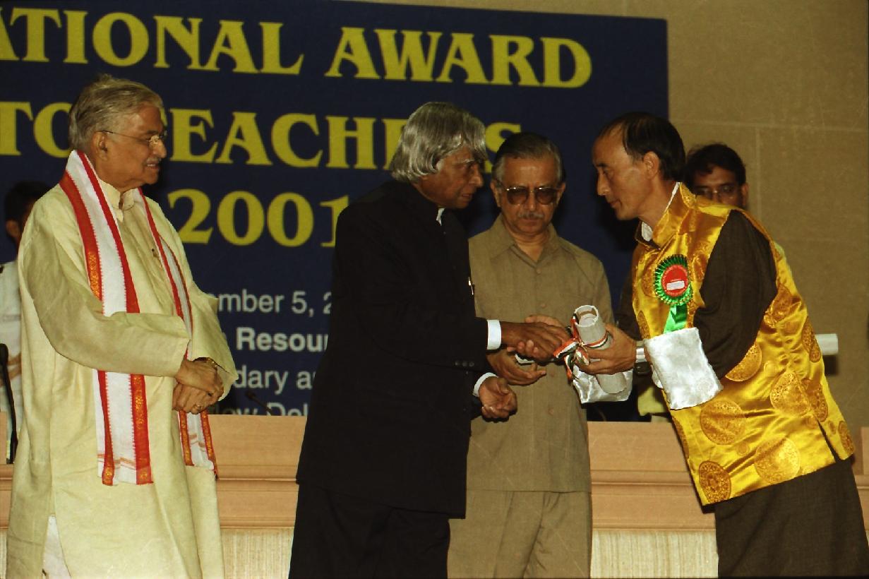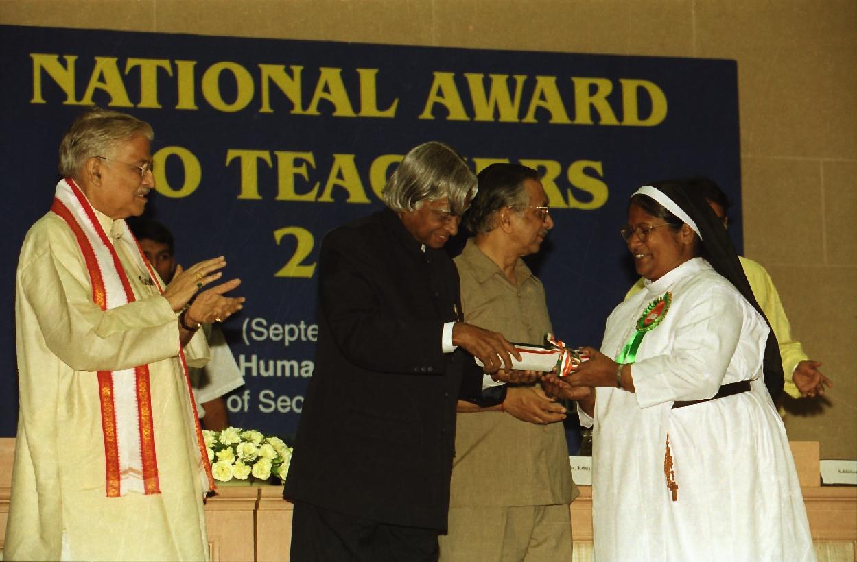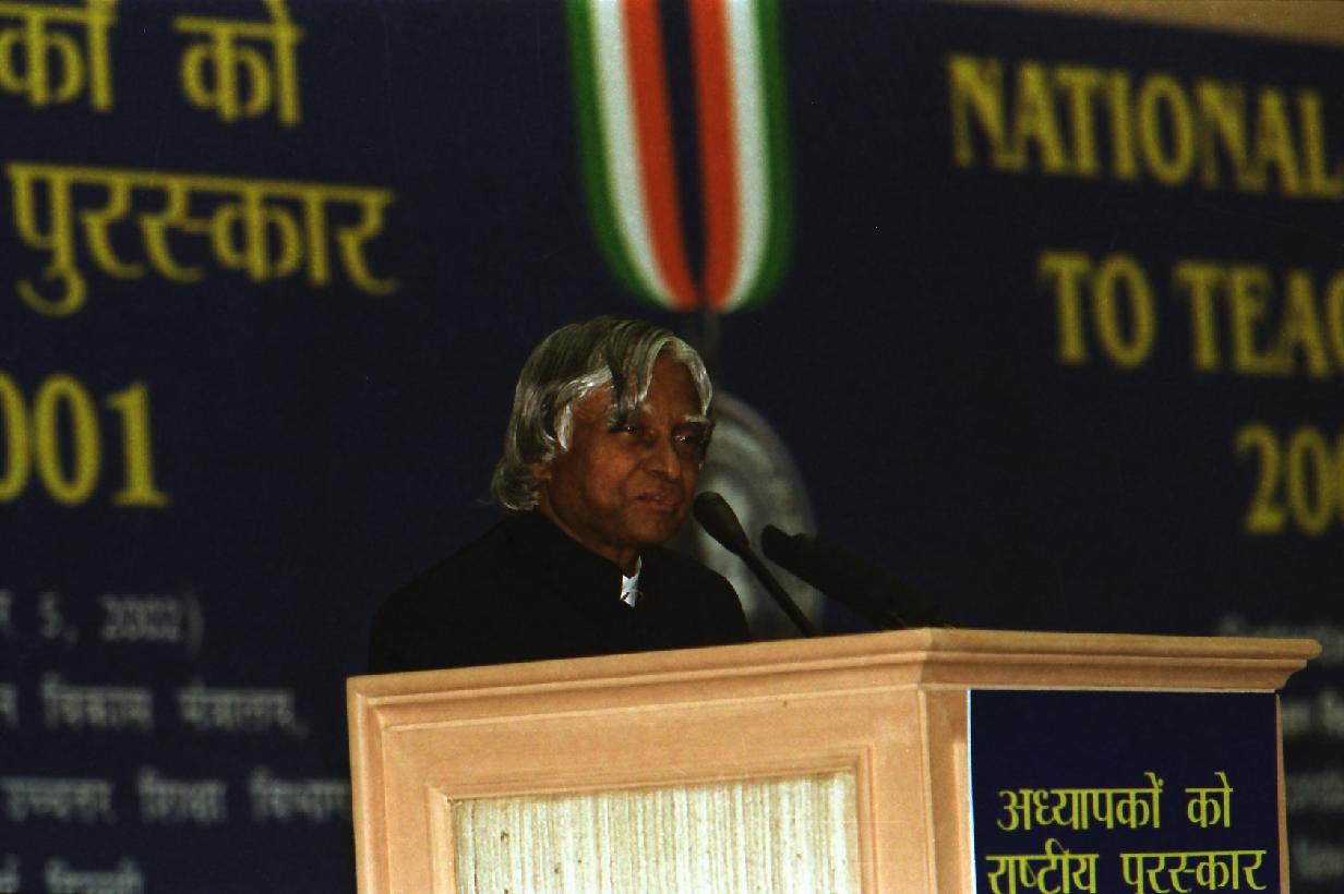 | Caption: | The President of India, Dr A P J Abdul Kalam presenting the National Awards to Teachers at Vigyan Bhavan in New Delhi on Sep 05, 2002 |