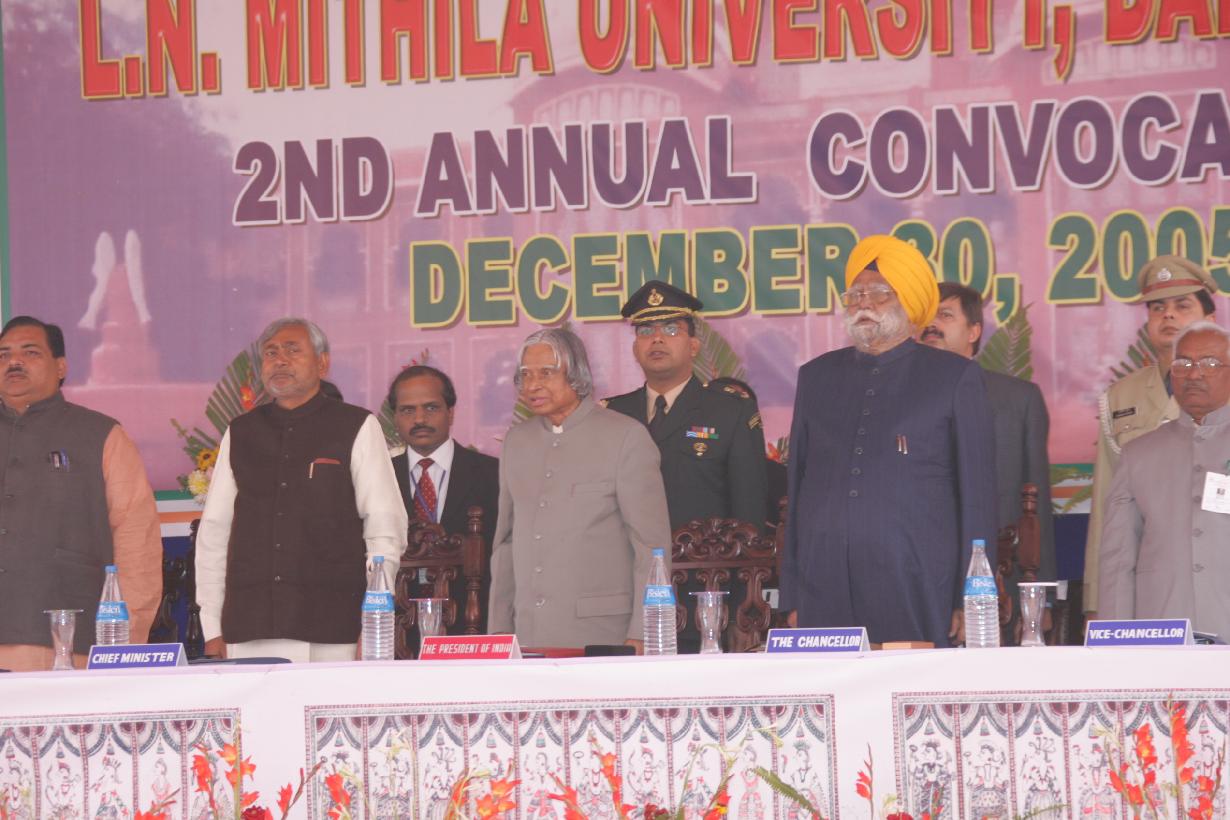 | Caption: | The President of India, Dr A P J Abdul Kalam at the Convocation of Mithila University at Patna in Bihar on Dec 30, 2005 |