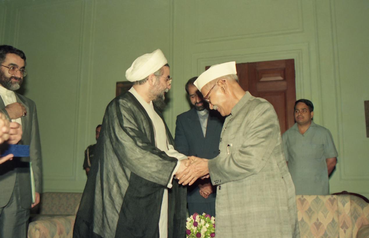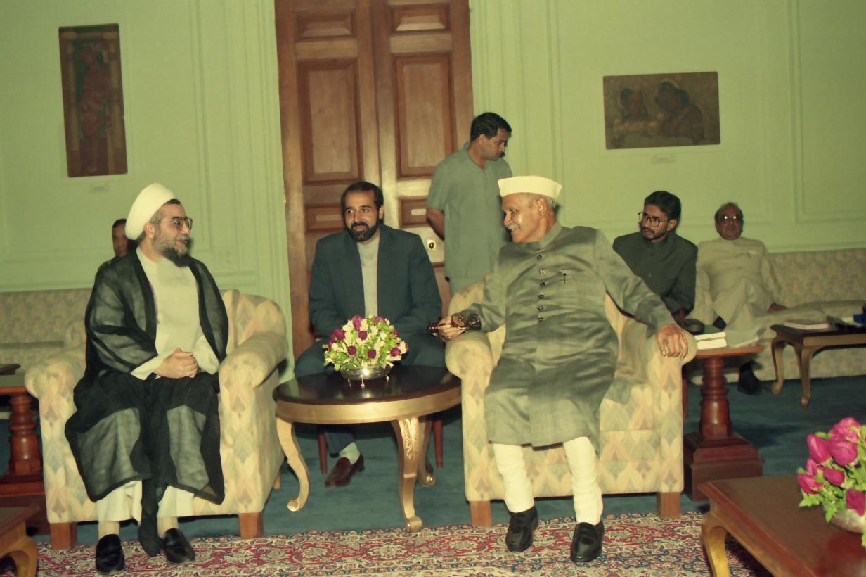 | Caption: | The President of India, Dr. Shankar Dayal Sharma meeting with H.E. Dr. Hassan Rohani, Deputy Speaker of the Majlis of Islamic Republic of Iran and Secretary of the National Security Council at Rashtrapati Bhavan in New Delhi on August 22, 1994. |
