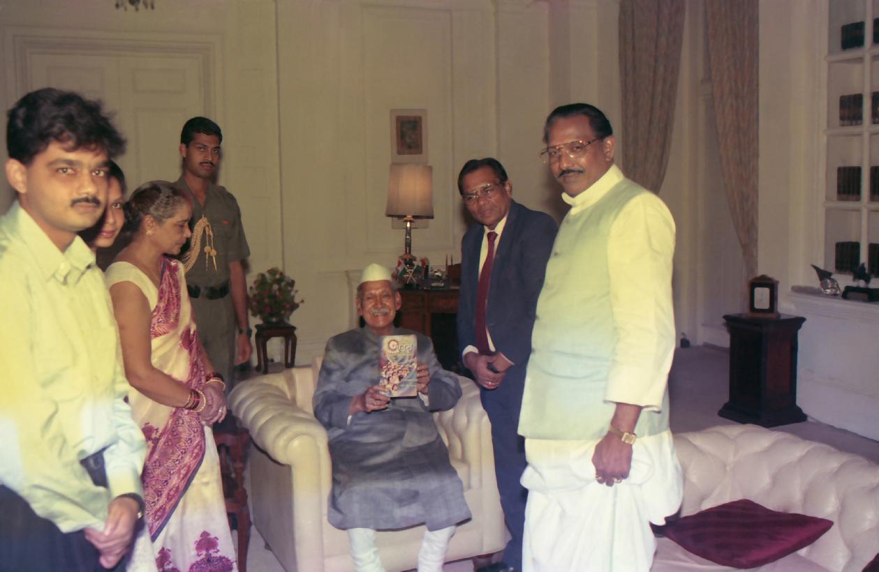 | Caption: | The President of India, Dr. Shankar Dayal Sharma receiving a copy of the book from Dr. Srivastava with others at Rashtrapati Bhavan in New Delhi on August 03, 1994. |