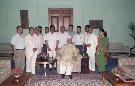 | Caption: | The President of India, Dr. Shankar Dayal Sharma receiving a copy of the book "Hindi-Kumaini-Angreji Shabdkosh" of Dr. Sher Singh Bisht of Kumanyun University at Rashtrapati Bhavan in New Delhi on August 30, 1994. |