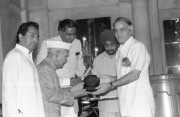 | Caption: | The President of India, Dr. Shankar Dayal Sharma presenting Indira Priyadarshini Vriksha Mitra Awards (1991), Indira Gandhi Paryavaran Puraskar (1992 & 1993) and National Award for Prevention of Pollution (1992) of the Ministry of Environment & Forests at Rashtrapati Bhavan in New Delhi on August 06, 1994. |