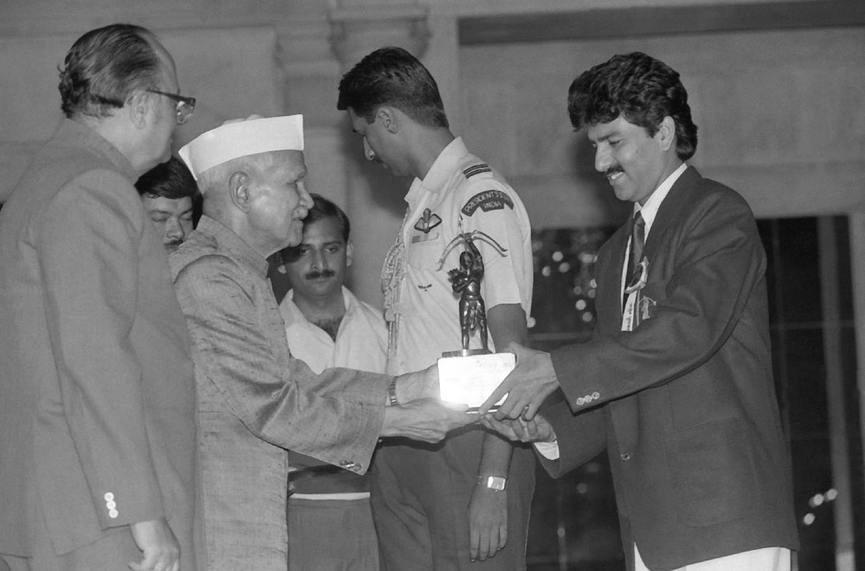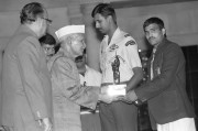 | Caption: | The President of India, Dr. Shankar Dayal Sharma presenting Arjuna Awards, the Rajiv Gandhi Khel Ratna Awards for 1992 & 1993 and Maulana Abul Kalam Azad Trophy at Rashtrapati Bhavan in New Delhi on August 08, 1994. |