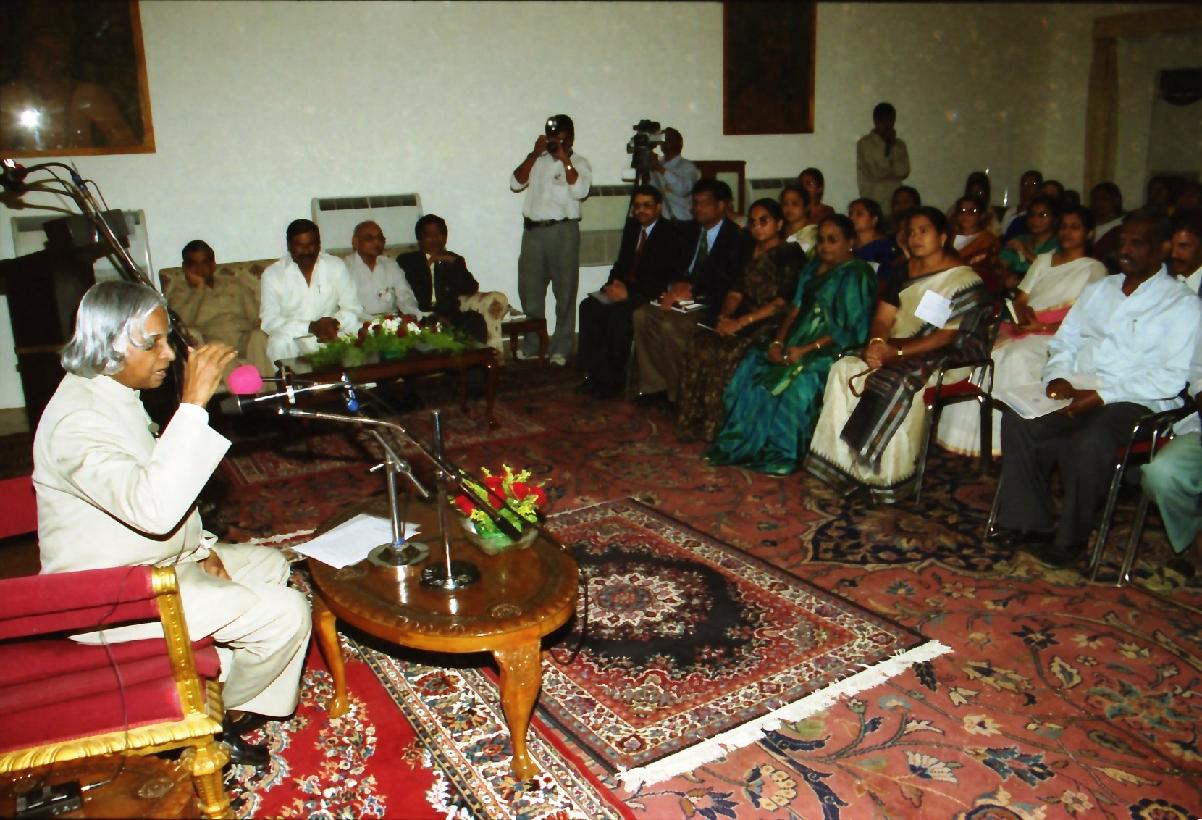 | Caption: | The President of India, Dr A P J Abdul Kalam meeting with the Teachers at Rashtrapati Nilayam at Hyderabad in Andhra Pradesh on March 15, 2003 |