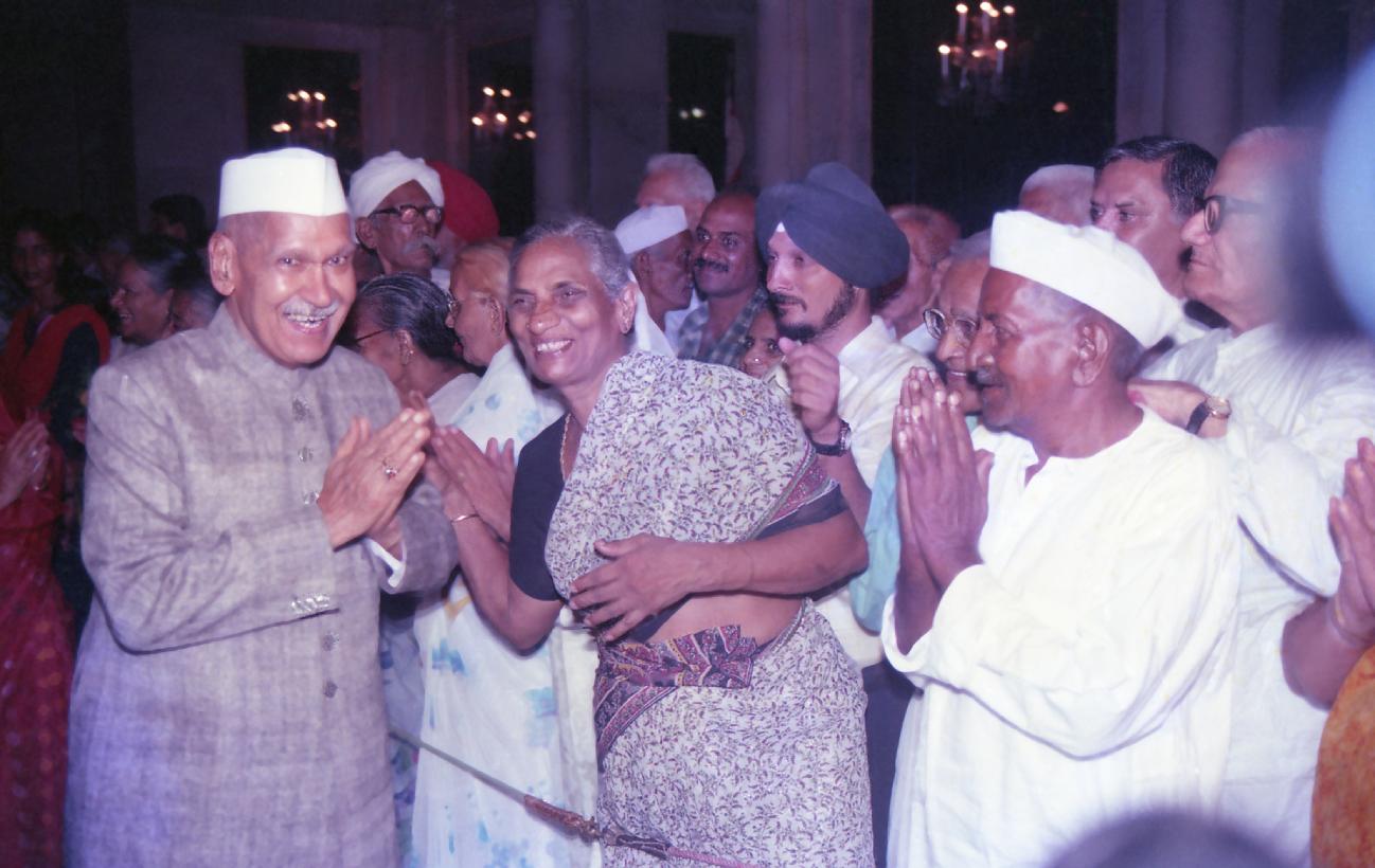 | Caption: | The President of India, Dr. Shankar Dayal Sharma meeting with Freedom Fighters, during ''At Home'' hosted for them, at Rashtrapati Bhavan in New Delhi on August 09, 1994. |