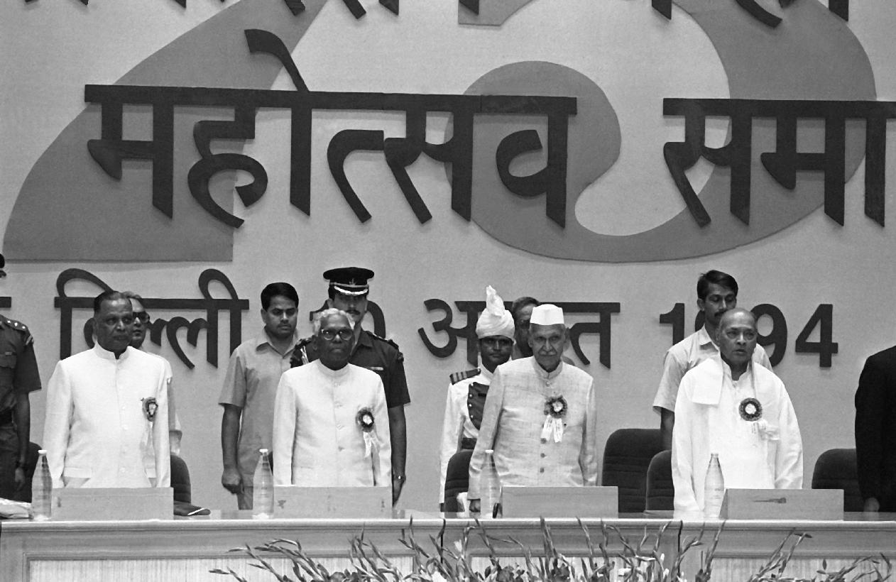 | Caption: | The President of India, Dr. Shankar Dayal Sharma attending Amrit Mahotsava celebrations of Shri Shankarrao Chavan at Vigyan Bhavan in New Delhi on August 10, 1994. |
