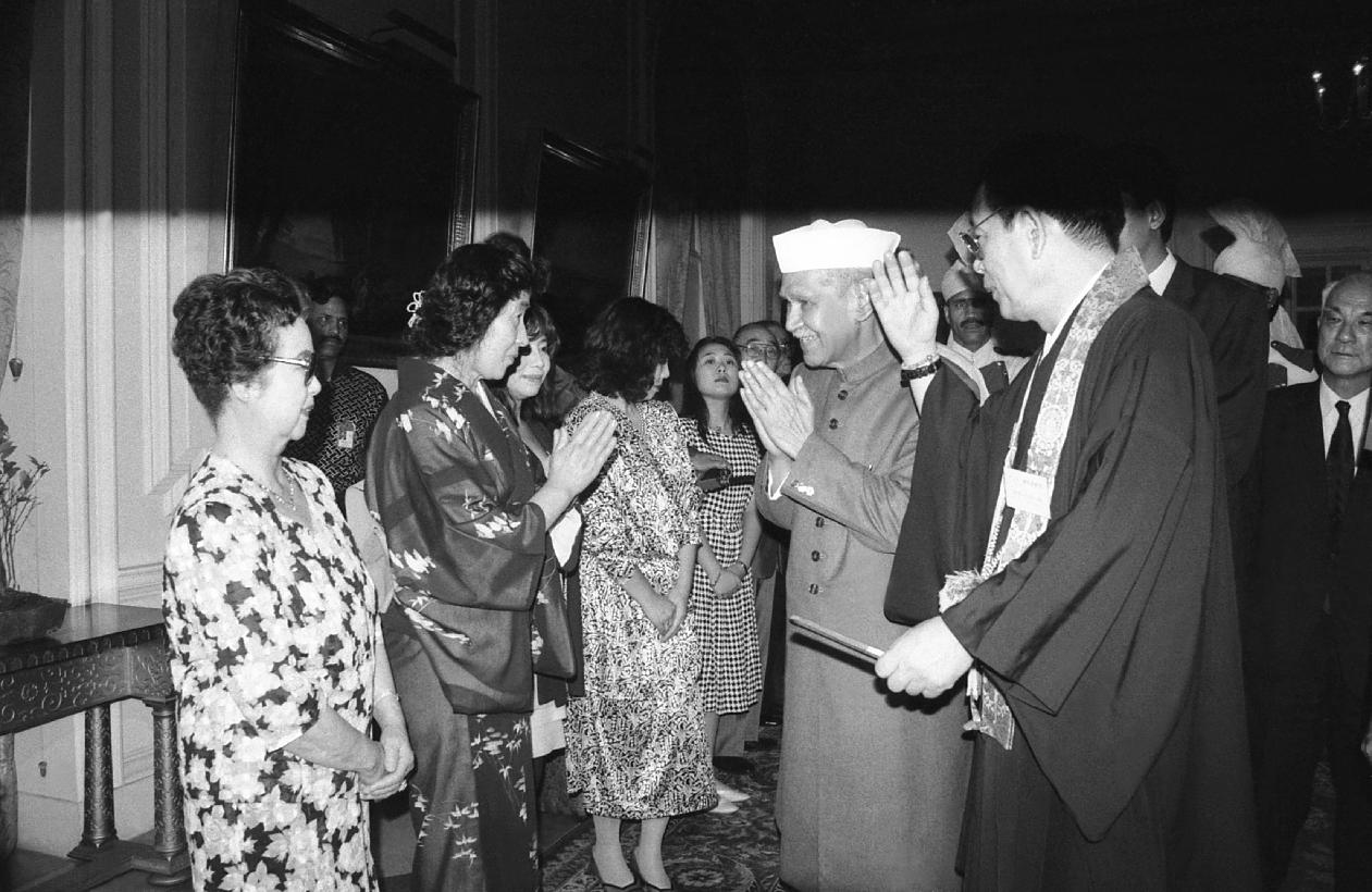 | Caption: | A Buddhist delegation from Nihonji Temple, Japan led by H.H. Norihiko Nashimoto calling on the President of India, Dr. Shankar Dayal Sharma at Rashtrapati Bhavan in New Delhi on March 17, 1994. |