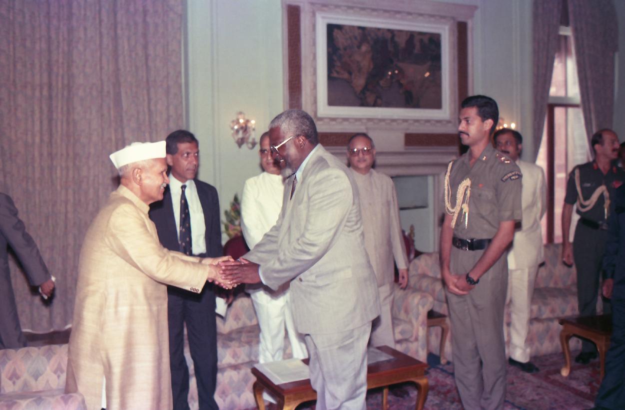 | Caption: | A Namibian Parliamentary Delegation led by H.E. Mr. Kandy Nehova, Chairman of the National Council calling on the President of India, Dr. Shankar Dayal Sharma at Rashtrapati Bhavan in New Delhi on August 11, 1994. |