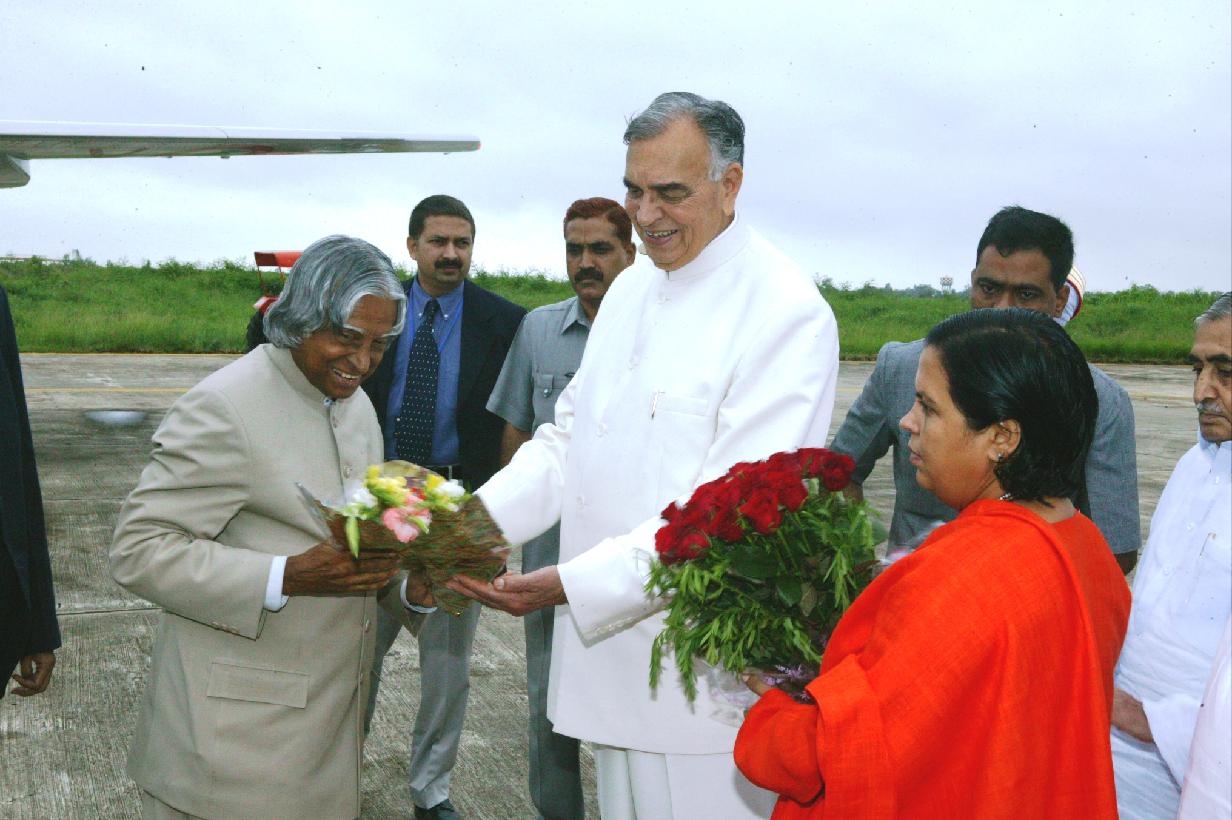 | Caption: | The President of India, Dr A P J Abdul Kalam arriving at Bhopal Airport in Madhya Pradesh on Aug 10, 2004 |