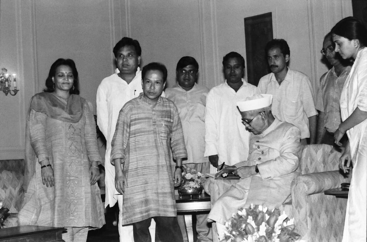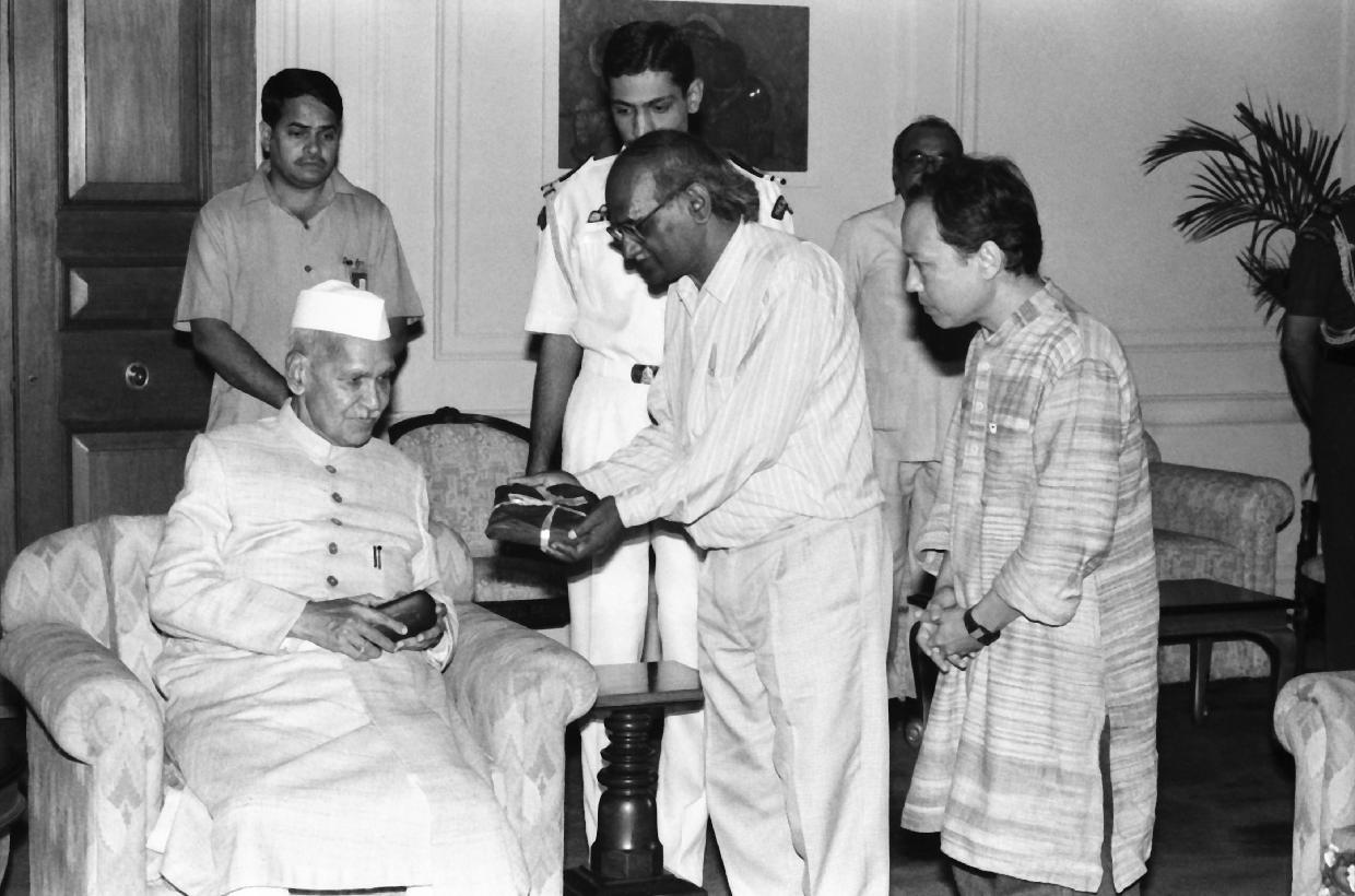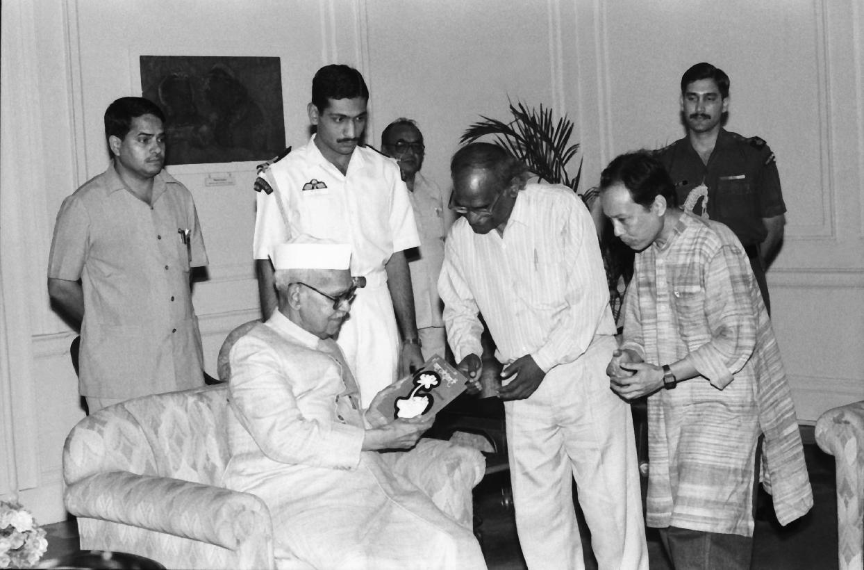 | Caption: | The President of India, Dr. Shankar Dayal Sharma receiving a copy of the book "Yeh Jo Kshan Hai" of Shri Sukhvir Vishwakarma at Rashtrapati Bhavan in New Delhi on August 16, 1994. |