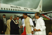 | Caption: | The President of India, Dr A P J Abdul Kalam at the Ceremonial Arrival at Bhopal Airport in Madhya Pradesh on Sep 05, 2002 |