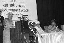 | Caption: | The President of India, Dr. Shankar Dayal Sharma addressing the 'Serva Dharma Samagam: Many Faiths-One India' at Teen Murti House in New Delhi on November 19, 1994. |