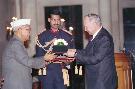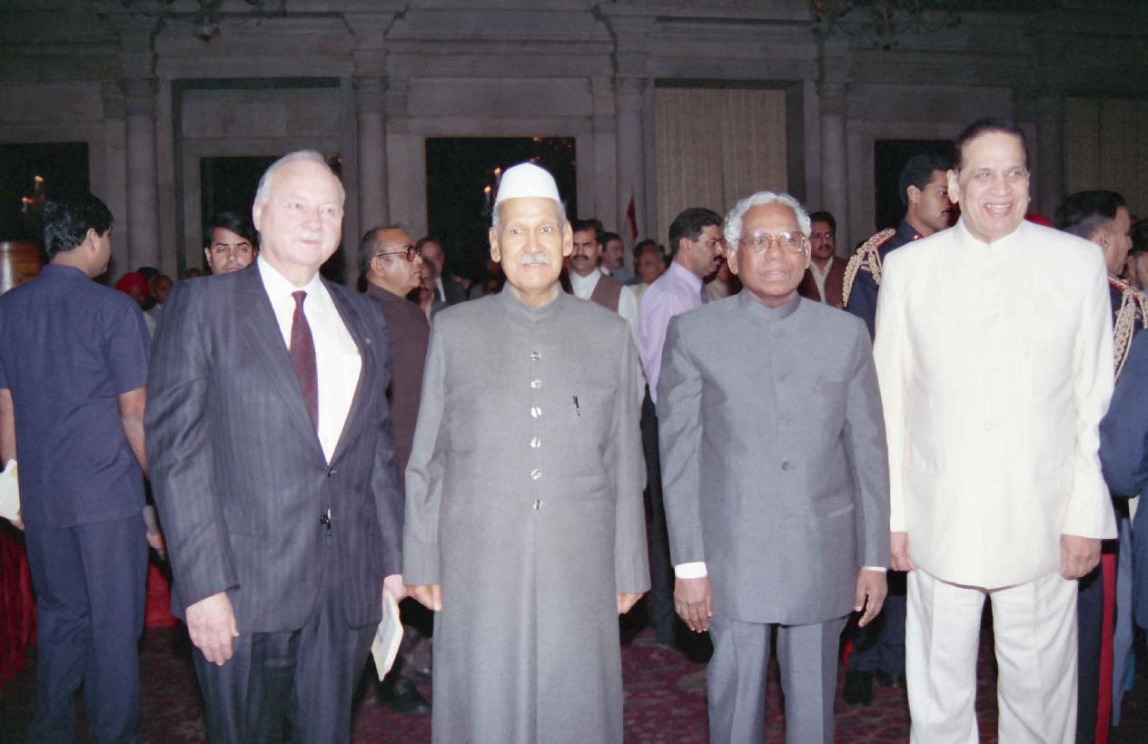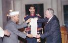 | Caption: | The President of India, Dr. Shankar Dayal Sharma presenting the Jawaharlal Nehru Award 1992 for International Understanding to Mr. Maurice F. Strong, at Rashtrapati Bhavan in New Delhi on November 17, 1994. |