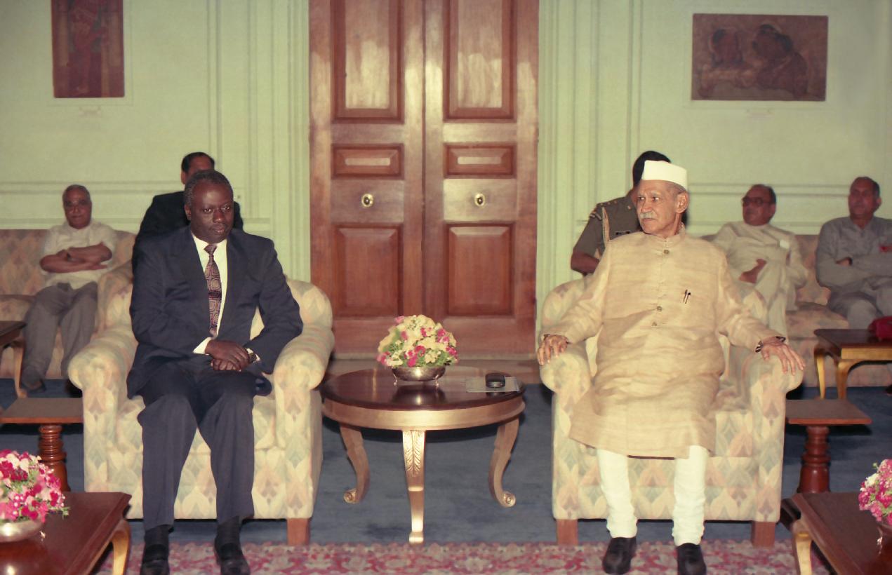 | Caption: | The President of India, Dr. Shankar Dayal Sharma meeting with Dr. Jacques Diouf, Director General, Food and Agriculture Organisation of the United Nations at Rashtrapati Bhavan in New Delhi on March 30, 1994. |