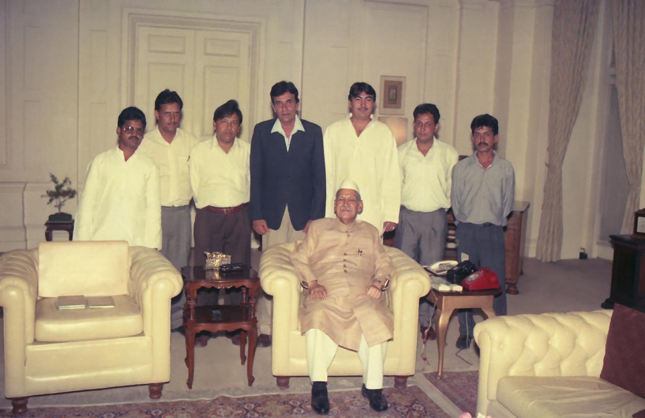 | Caption: | The President of India, Dr. Shankar Dayal Sharma meeting with Shri Salim Durani with others at Rashtrapati Bhavan in New Delhi on March 30, 1994. |