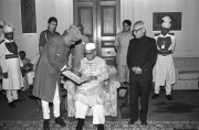 | Caption: | The President of India, Dr. Shankar Dayal Sharma receiving a copy of the book "Dara Shikoh Album" brought by ANZ Grindlays Bank at Rashtrapati Bhavan in New Delhi on November 02, 1994. |