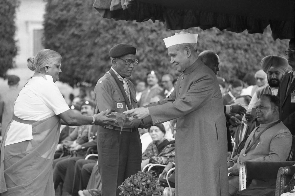 | Caption: | The President of India, Dr. Shankar Dayal Sharma presiding over the Rally of Bharat Scouts and Guides at Rashtrapati Bhavan in New Delhi on November 24, 1994. |