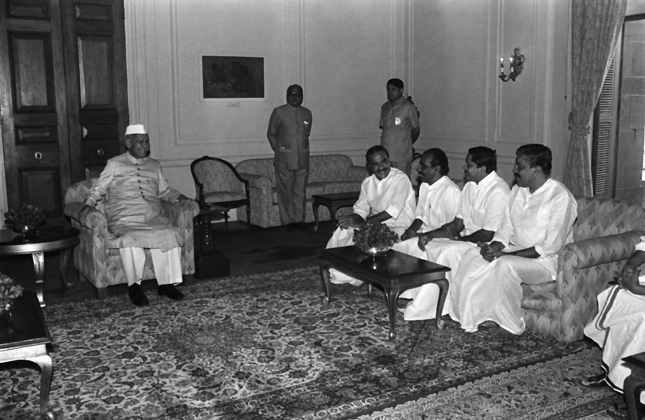 | Caption: | The President of India, Dr. Shankar Dayal Sharma meeting with a delegation from Kerala at Rashtrapati Bhavan in New Delhi on November 02, 1994. |