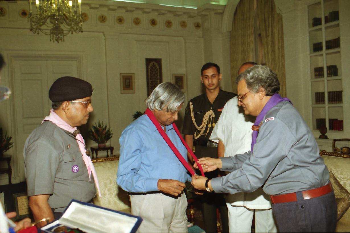 | Caption: | The President of India, Dr A P J Abdul Kalam with Shri Sharad Pawar, MP(LS) and others of Bharat Scouts & Guides at Rashtrapati Bhavan in New Delhi on Sep 09, 2002 |