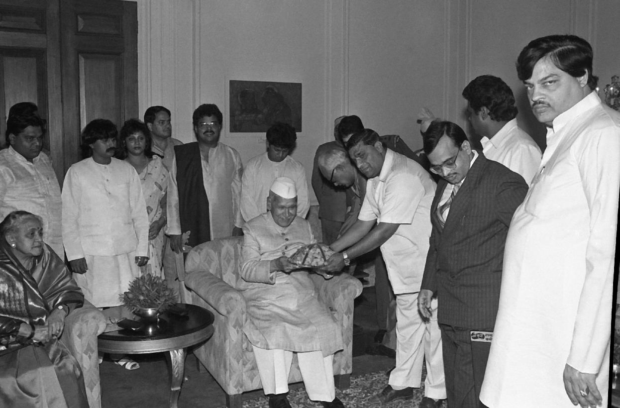 | Caption: | A Member delegation of Lav-Kush Ramlila Committee calling on the President of India, Dr. Shankar Dayal Sharma at Rashtrapati Bhavan in New Delhi on November 02, 1994. |
