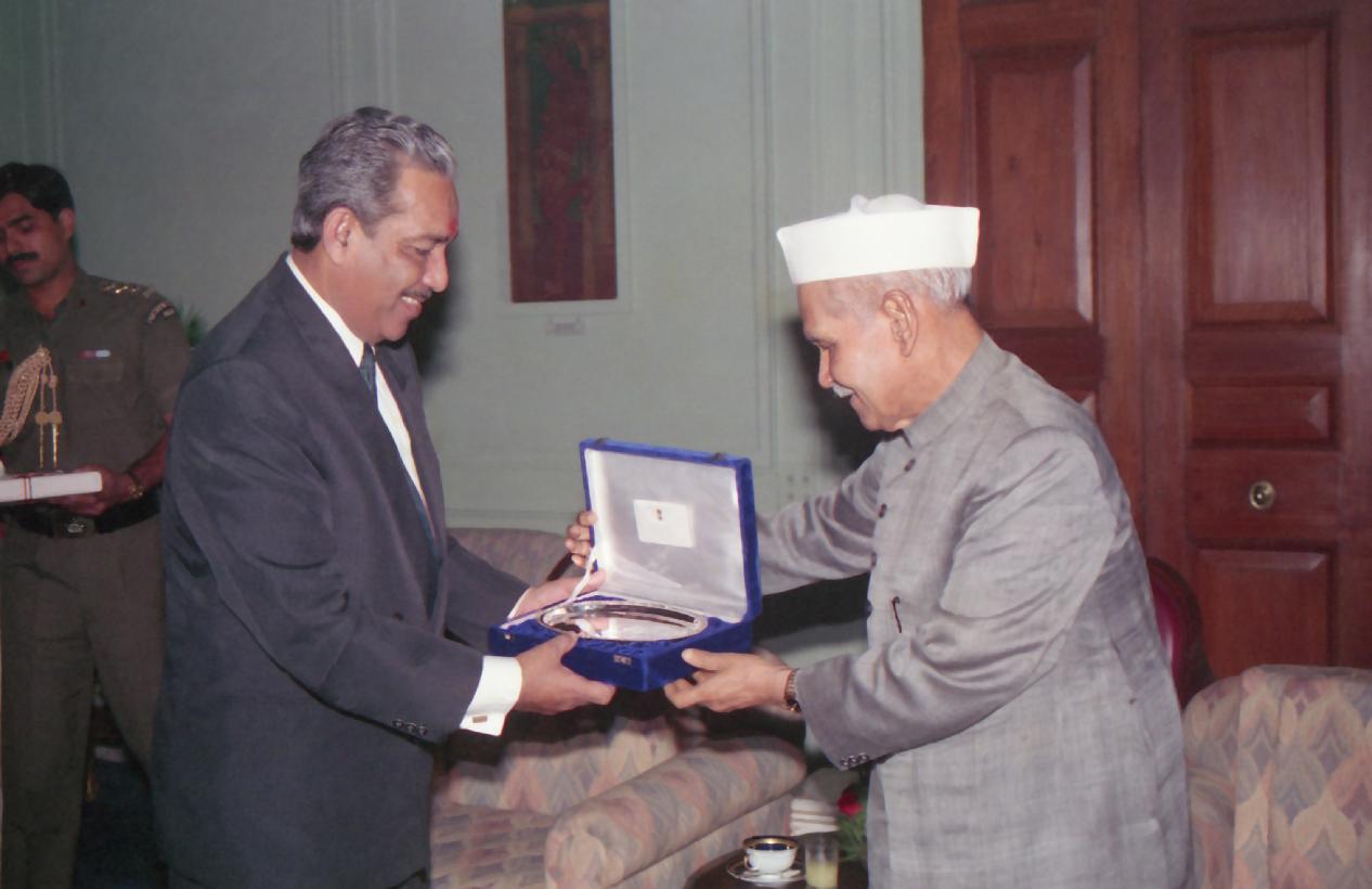 | Caption: | The President of India, Dr. Shankar Dayal Sharma meeting with Members of Shri Dharmic Leela Committee at Rashtrapati Bhavan in New Delhi on November 12, 1994. |