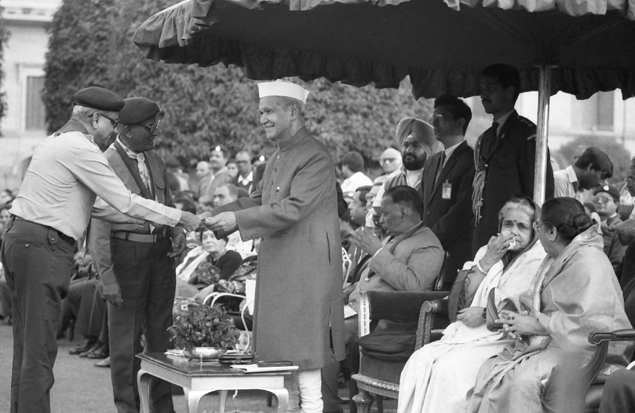| Caption: | The President of India, Dr. Shankar Dayal Sharma presiding over the Rally of Bharat Scouts and Guides at Rashtrapati Bhavan in New Delhi on November 24, 1994. |