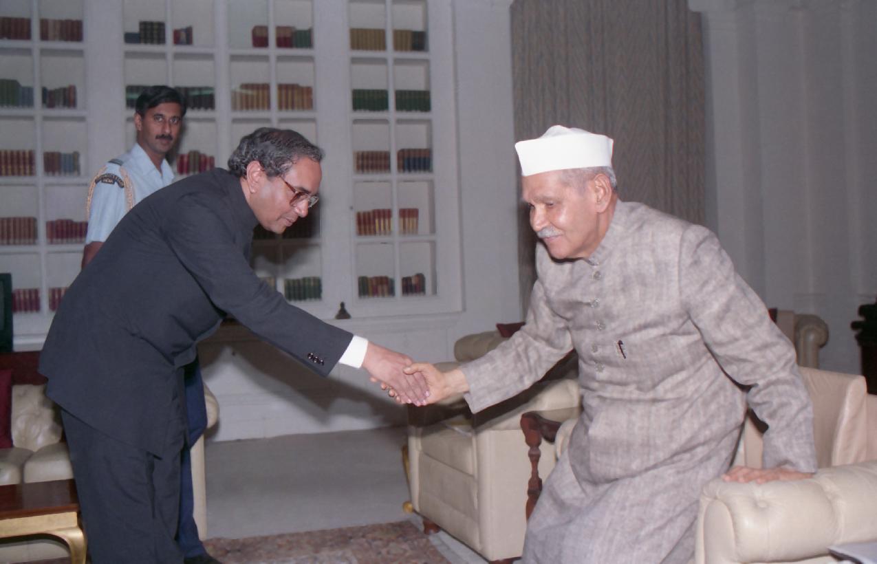 | Caption: | The President of India, Dr. Shankar Dayal Sharma meeting with Shri Shashank, Ambassador designate to Korea at Rashtrapati Bhavan in New Delhi on November 11, 1994. |