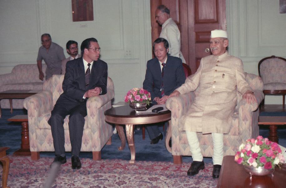 | Caption: | A Vietnamese Parliamentary delegation led by H.E. Mr. Nong Duc Manh, Chairman of the National Assembly of Vietnam calling on the President of India, Dr. Shankar Dayal Sharma at Rashtrapati Bhavan in New Delhi on April 22, 1994. |