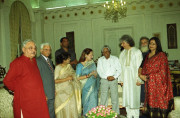 | Caption: | The President of India, Dr A P J Abdul Kalam with Pt Shivkumar Sharma, Smt Shivkumar Sharma, Mr David Davidar and others to present a Copy of the Book ''A Journey with Hundred Strings'' at Rashtrapati Bhavan in New Delhi on Sep 26, 2002 |