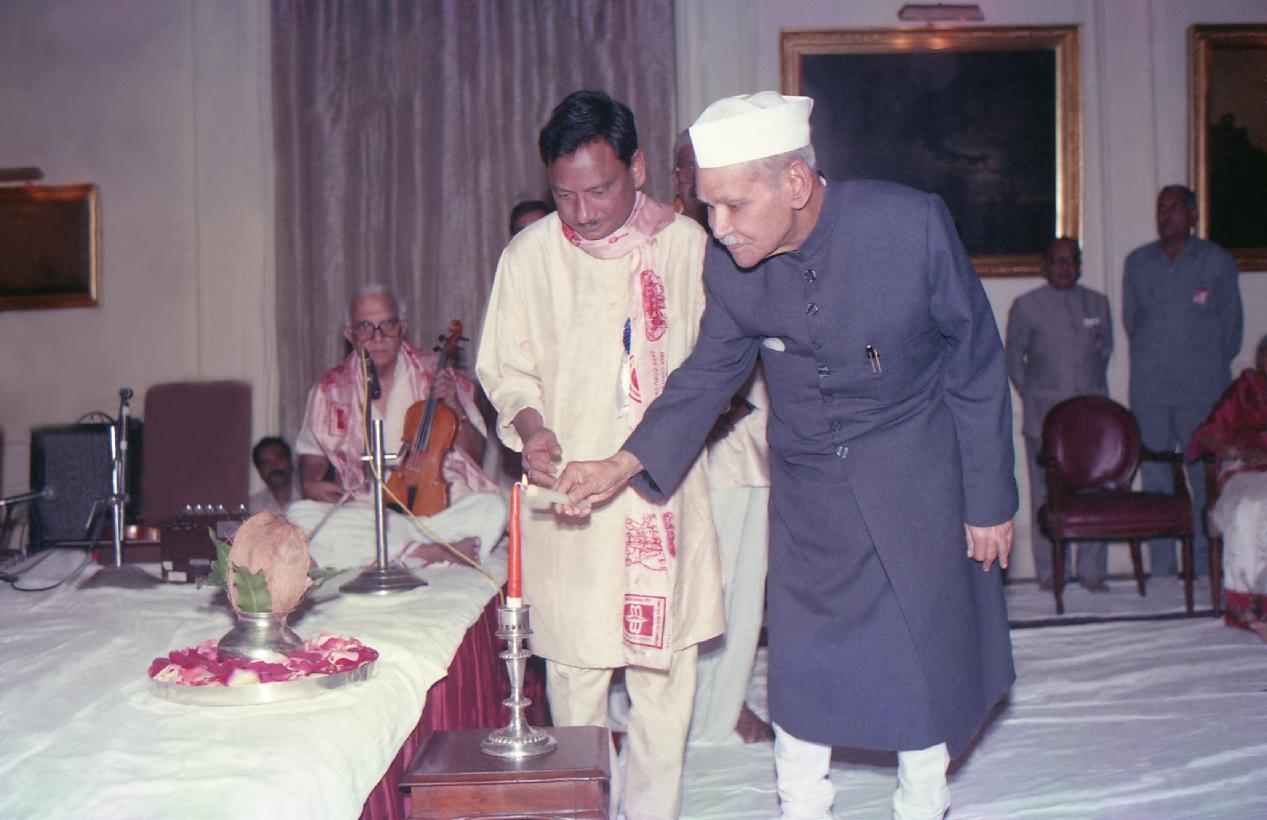 | Caption: | The President of India, Dr. Shankar Dayal Sharma attending the Music Concert by H.H. Sri Sri Sri Ganapathi Sachidananda Swamiji of Mysore Peetham at Rashtrapati Bhavan in New Delhi on March 20, 1994. |