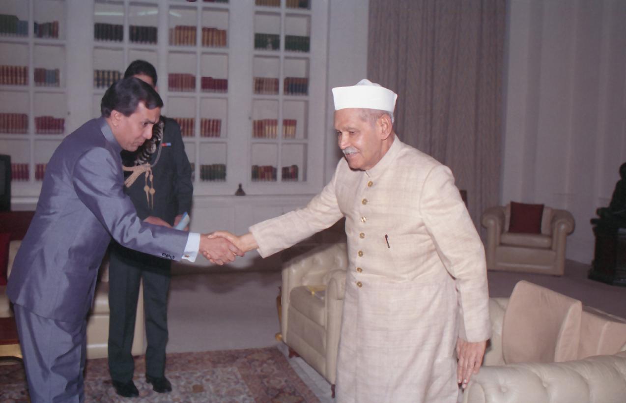 | Caption: | The President of India, Dr. Shankar Dayal Sharma meeting with Shri Surendra Kumar, Ambassador of Libya at Rashtrapati Bhavan in New Delhi on November 15, 1994. |