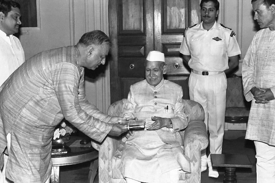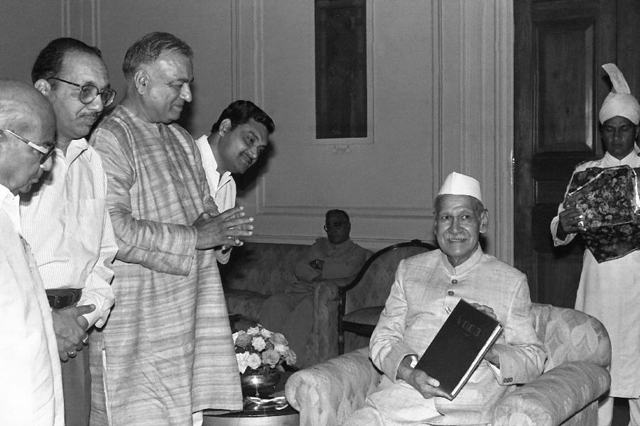 | Caption: | The President of India, Dr. Shankar Dayal Sharma receiving a copy of the book "Yoga" at Rashtrapati Bhavan in New Delhi on April 02, 1994. |