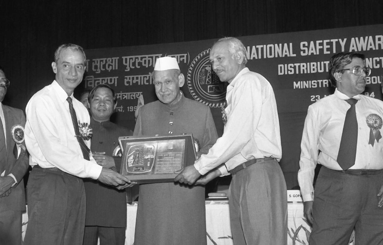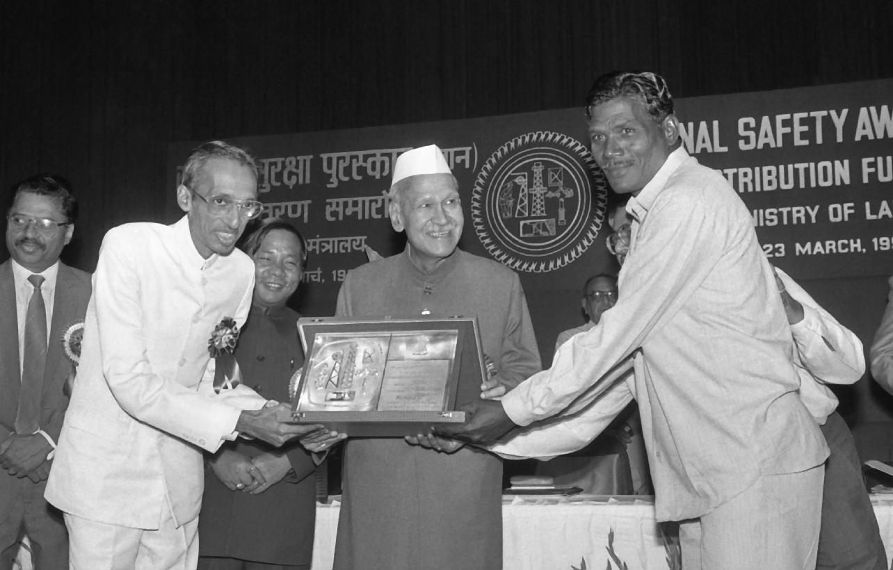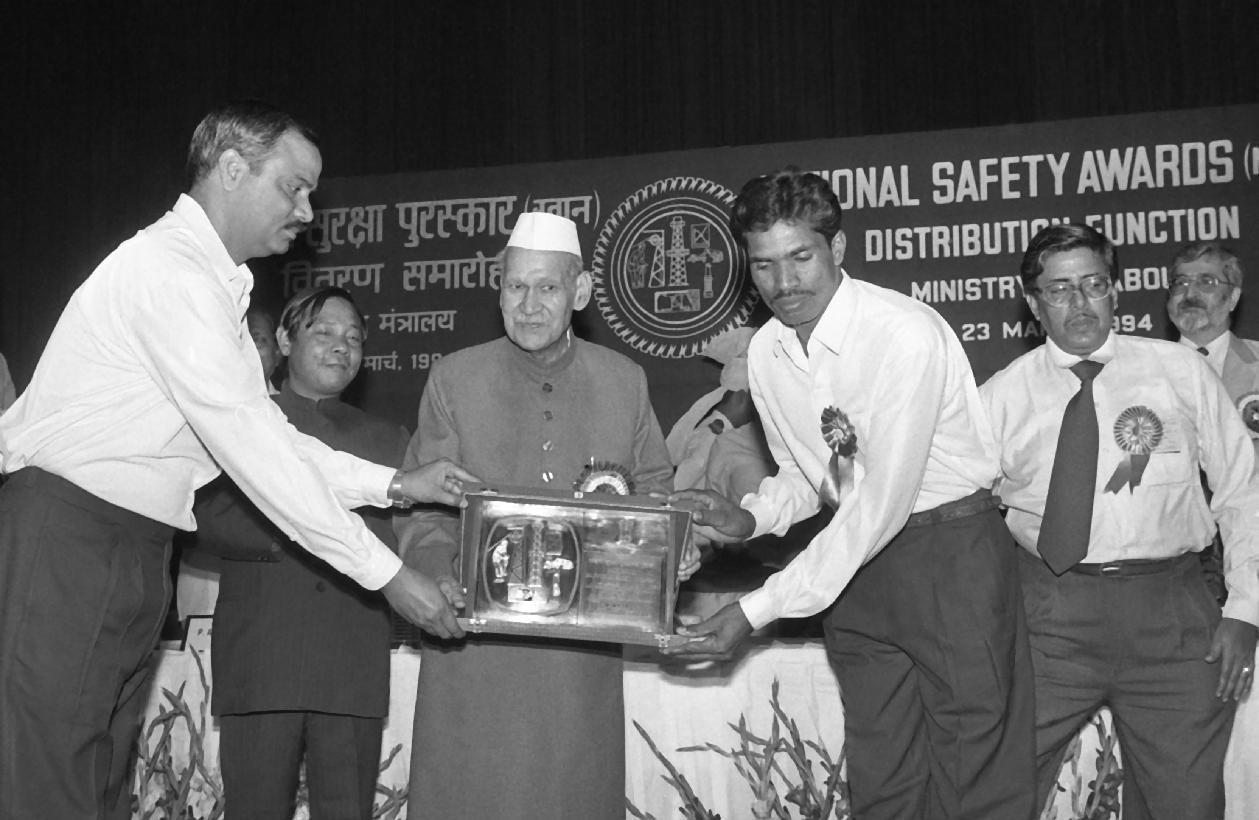 | Caption: | The President of India, Dr. Shankar Dayal Sharma presenting National Safety Awards at FICCI auditorium, in New Delhi on March 23, 1994. |