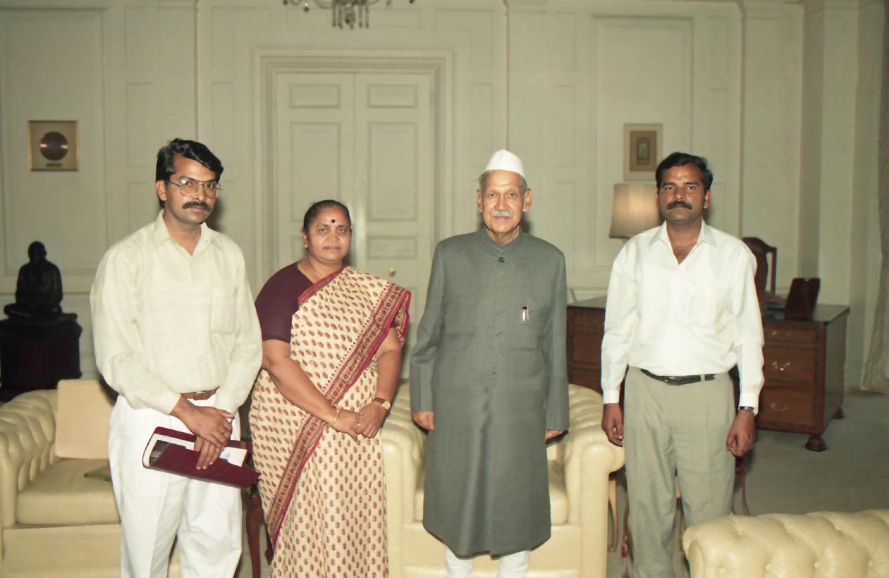 | Caption: | The President of India, Dr. Shankar Dayal Sharma meeting with Smt. Satya Behan, Ex-MP with others at Rashtrapati Bhavan in New Delhi on March 23, 1994. |
