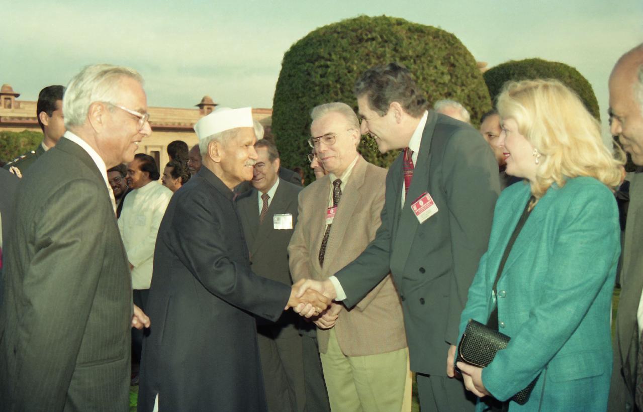 | Caption: | The President of India, Dr. Shankar Dayal Sharma meeting with Delegates of the 10th General Conference of the International Association of Universities at Rashtrapati Bhavan in New Delhi on February 06, 1995. |