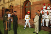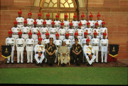 | Caption: | The President of India, Dr A P J Abdul Kalam posing for a Group photograph with the Jat Regimental Centre Brass Band at the East Lawn of Rashtrapati Bhavan in New Delhi on Sep 28, 2002 |