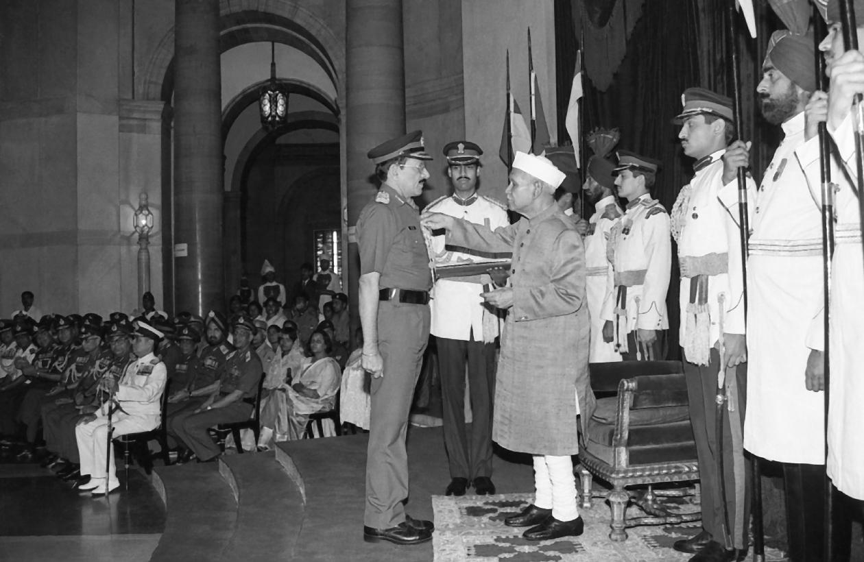 | Caption: | The President of India, Dr. Shankar Dayal Sharma presenting the Gallantry awards, at Defence Investiture Ceremony-II at Rashtrapati Bhavan in New Delhi on March 26, 1994. |