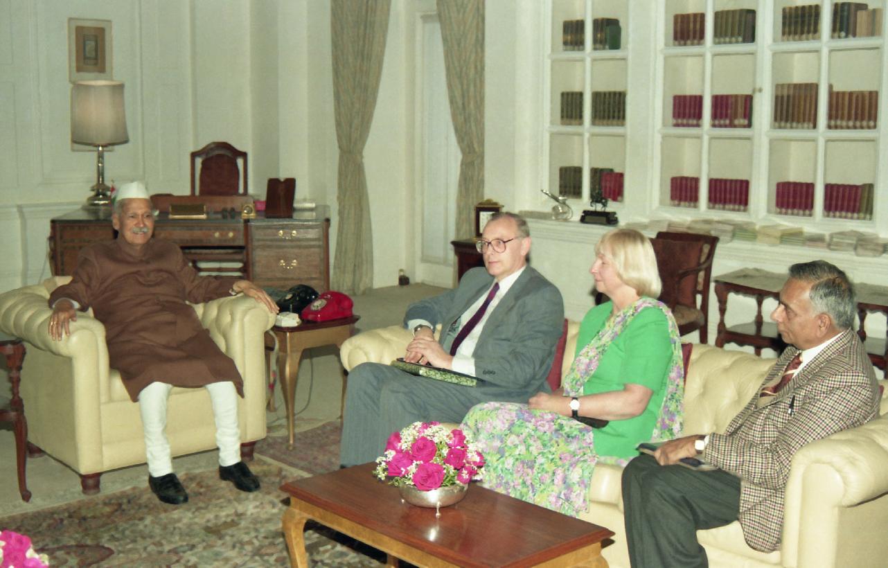 | Caption: | The President of India, Dr. Shankar Dayal Sharma meeting with Dr. Michael Halstead, Chief Executive & Secretary General of the University of Cambridge Local Examinations Syndicate with others at Rashtrapati Bhavan in New Delhi on February 07, 1995. |