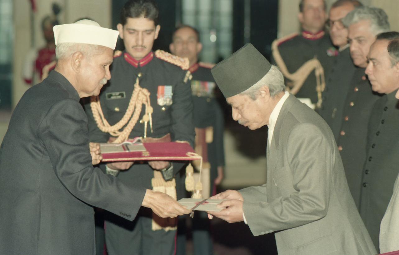 | Caption: | The Ambassador-Designate of Nepal to India, H.E. Prof. Harsha Narayan Dhaubhadel presenting his credentials to the President of India, Dr. Shankar Dayal Sharma at Rashtrapati Bhavan in New Delhi on February 04, 1995. |