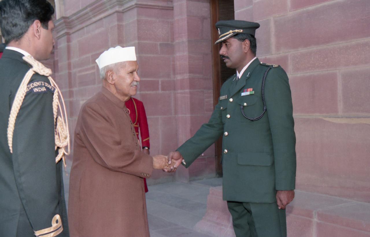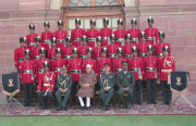 | Caption: | The President of India, Dr. Shankar Dayal Sharma in a Group Photograph with the band personnel of the Grenadiers Regimental Centre Brass Band at Rashtrapati Bhavan in New Delhi on March 03, 1995. |