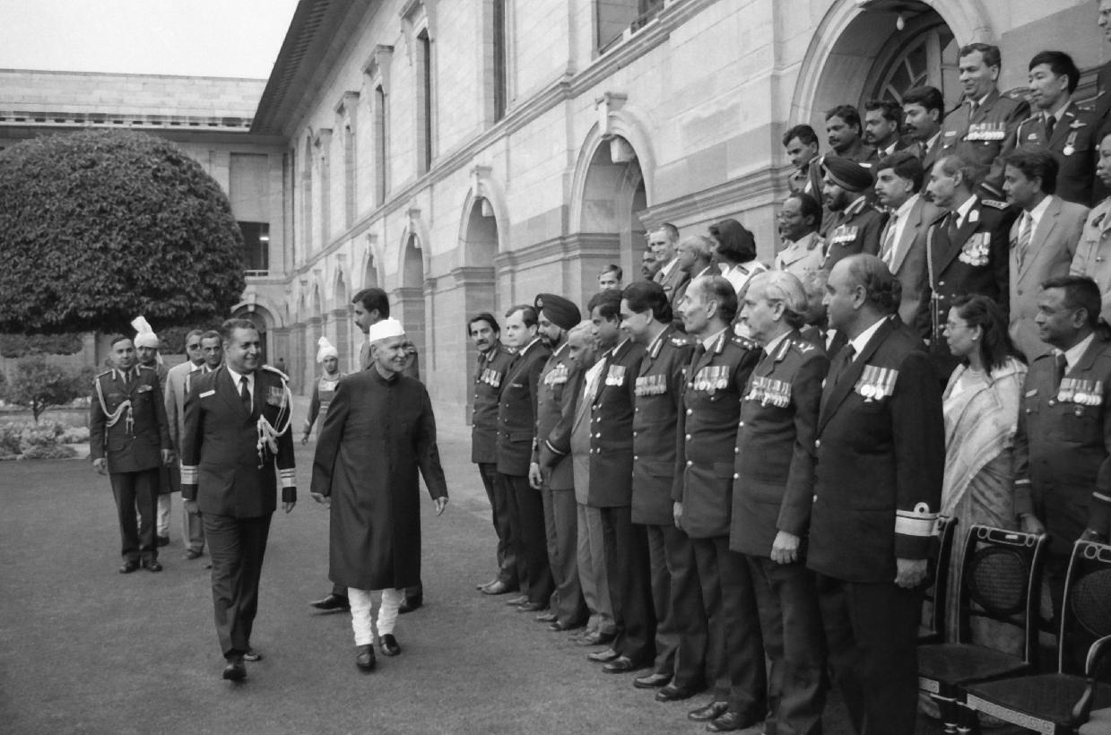 | Caption: | The President of India, Dr. Shankar Dayal Sharma meeting with the National Defence College faculty, Staff, 35th Course members alongwith their spouses at Rashtrapati Bhavan in New Delhi on March 10, 1995. |