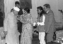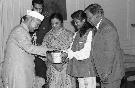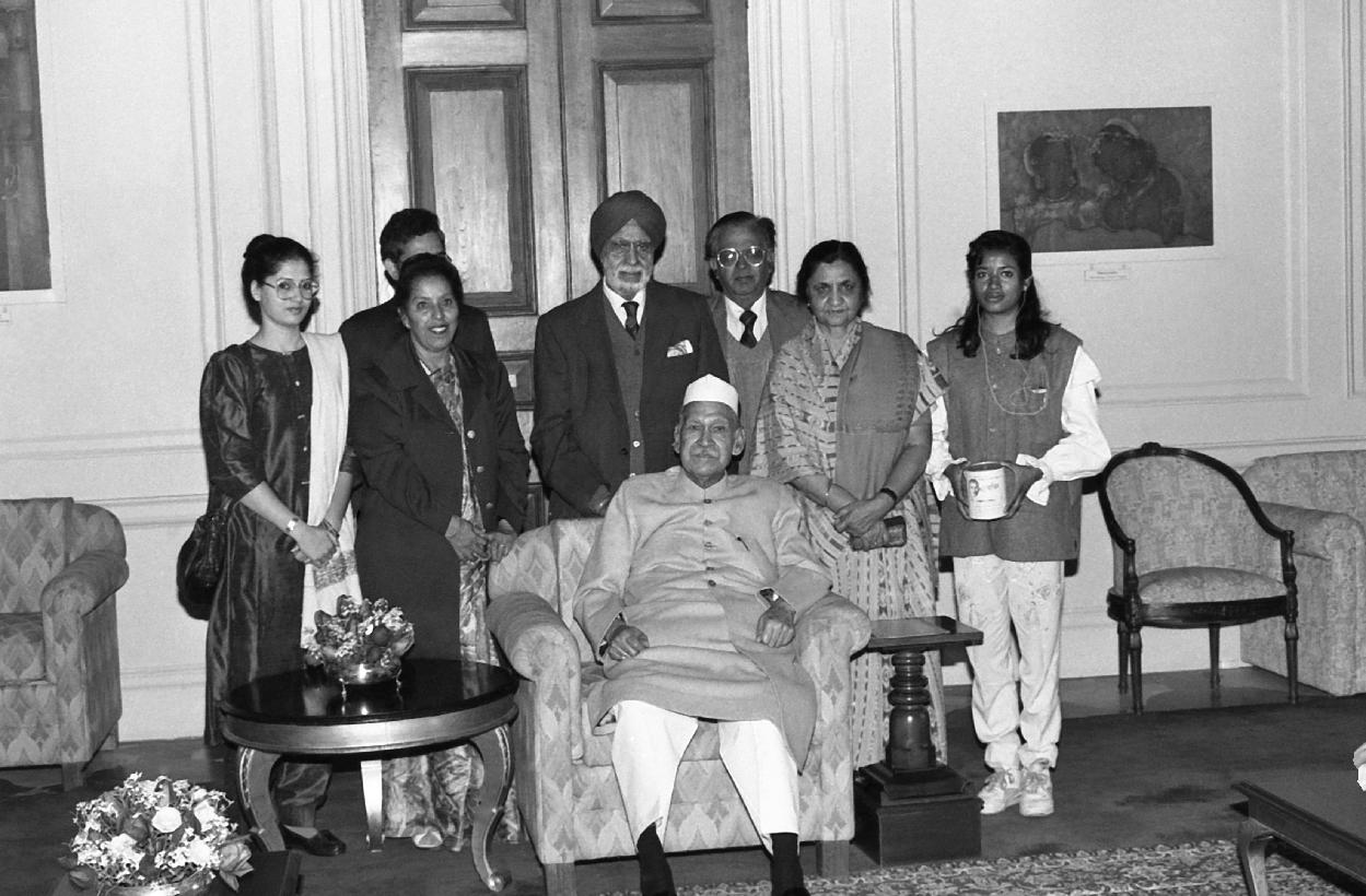 | Caption: | The President of India, Dr. Shankar Dayal Sharma being pinned a flag by the office bearers of the All India Federation of the Deaf on the occasion of their Flag Week at Rashtrapati Bhavan in New Delhi on February 02, 1995. |
