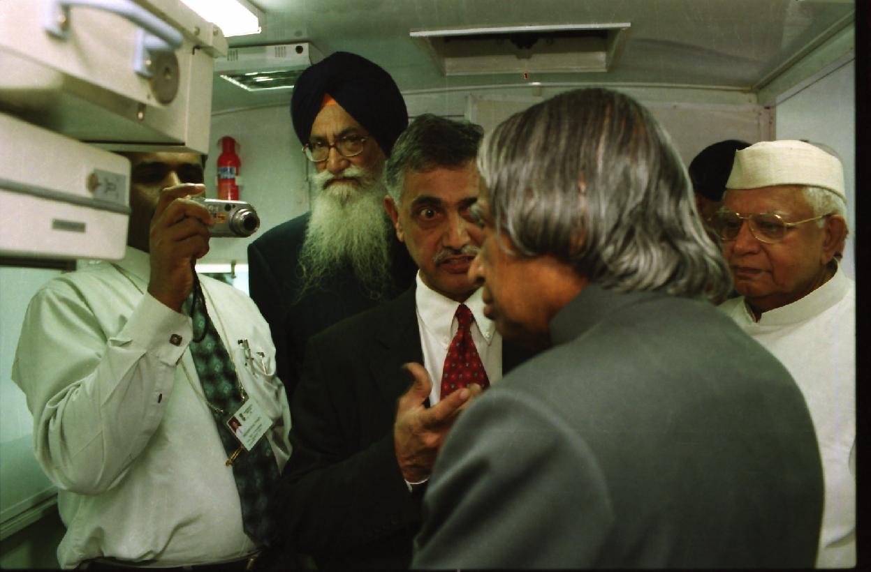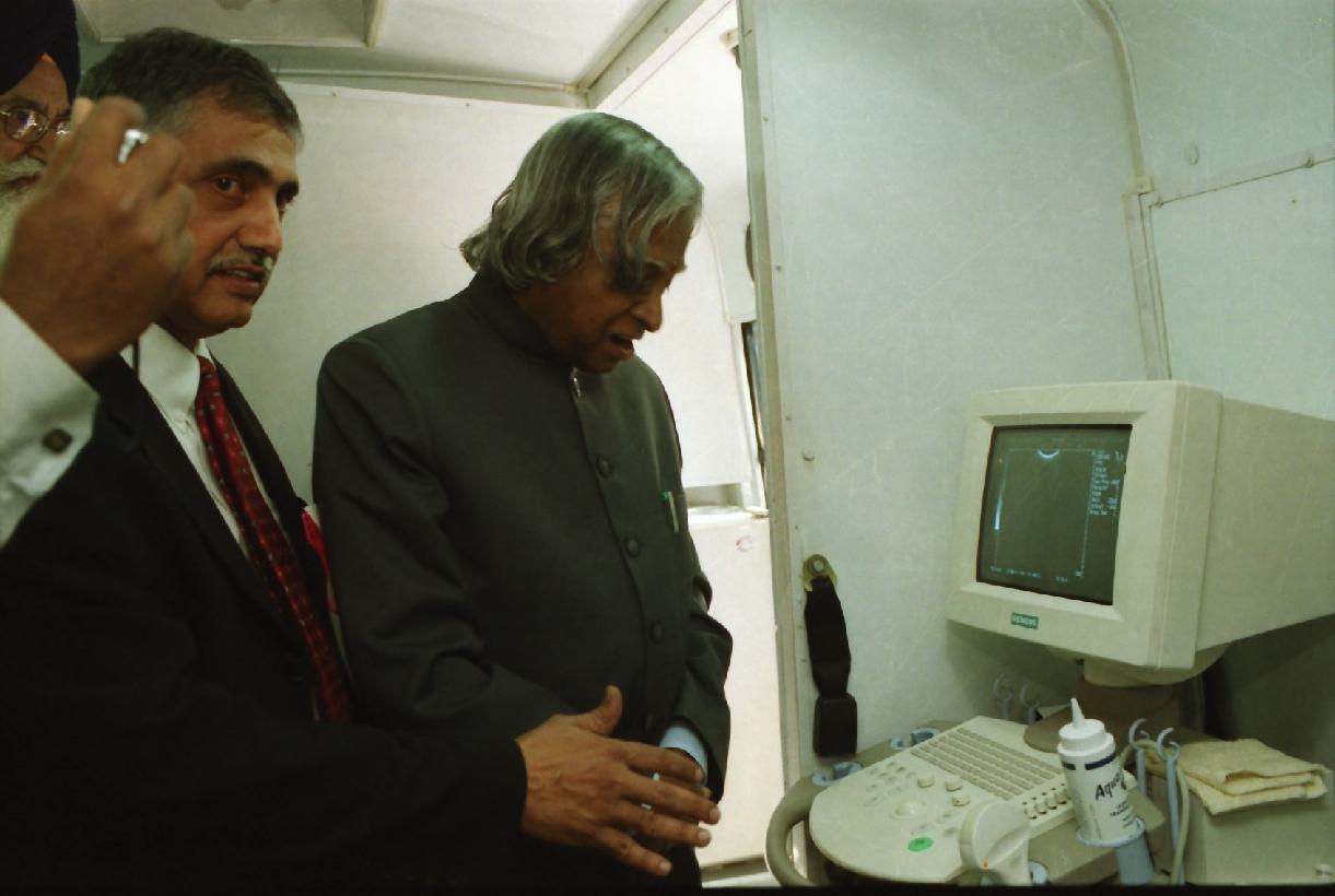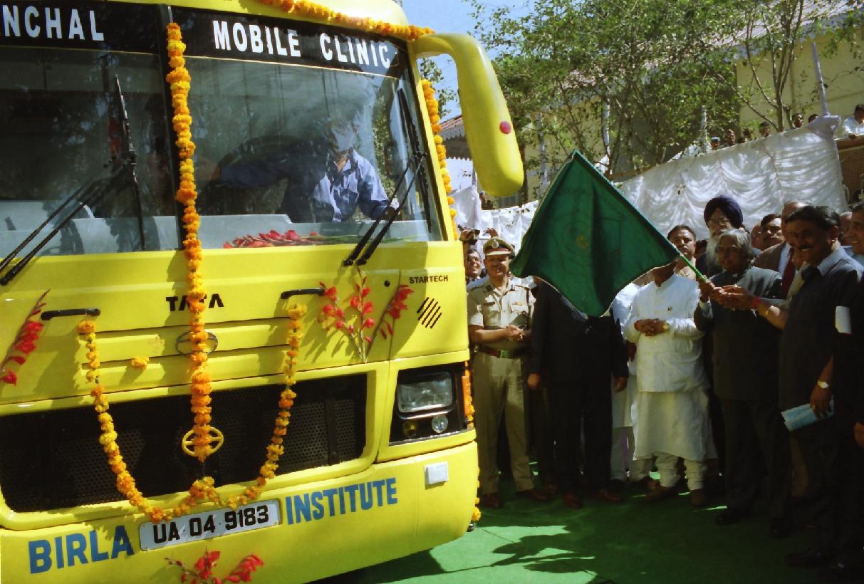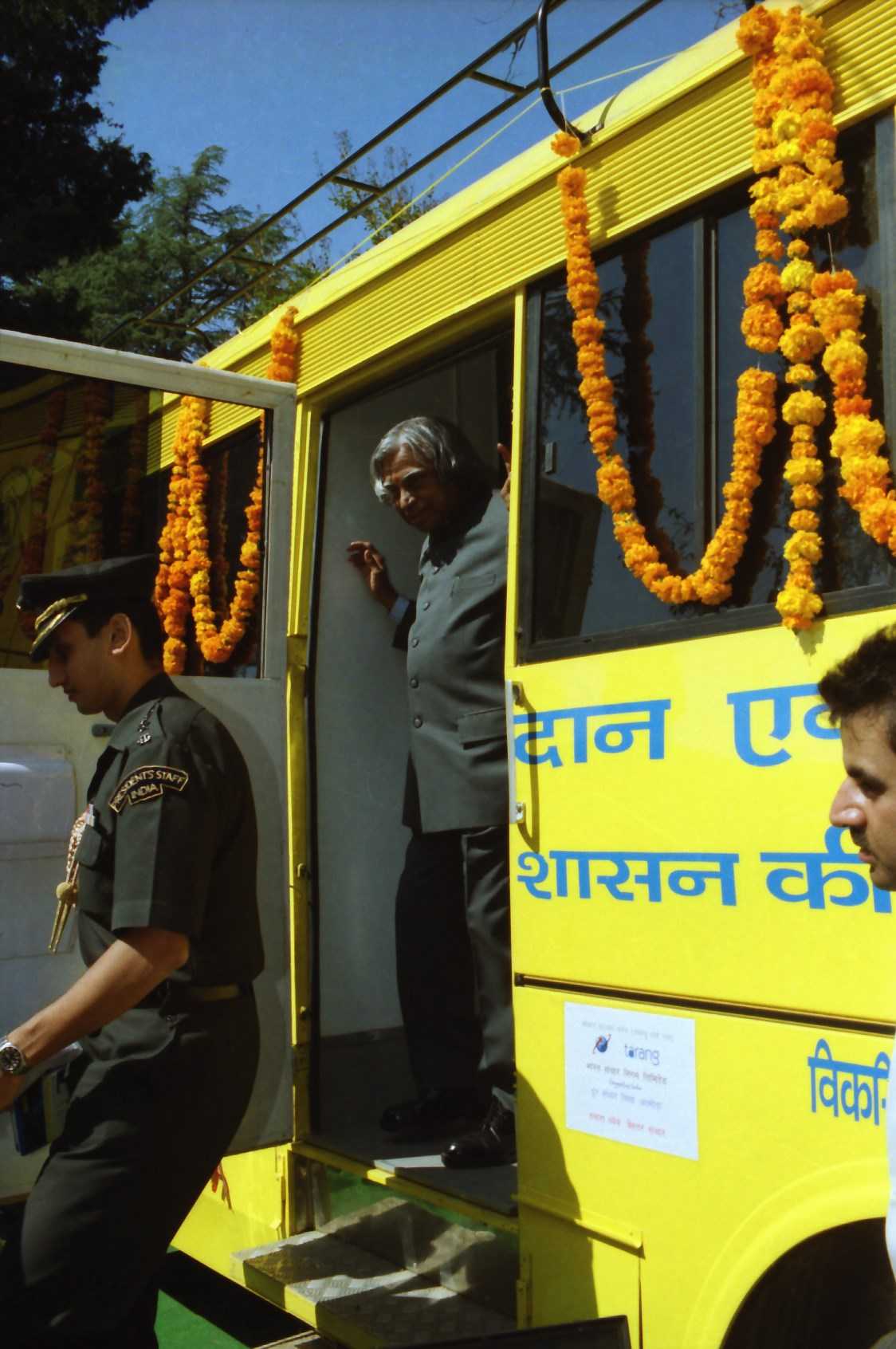 | Caption: | The President of India, Dr A P J Abdul Kalam flagging off the Mobile Clinic and Research Centre at Almora in Arunachal Pradesh on Oct 19, 2002 |