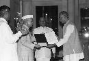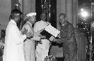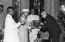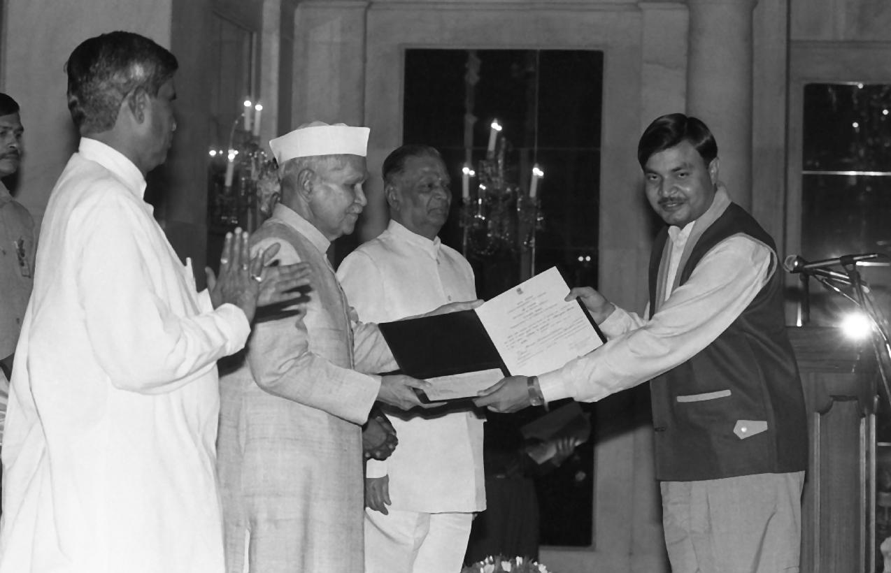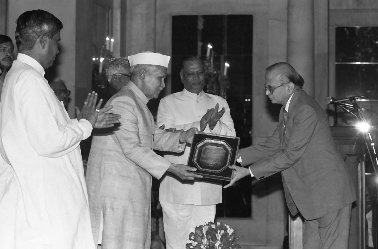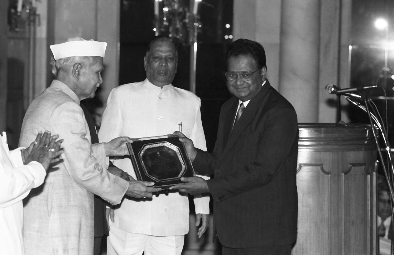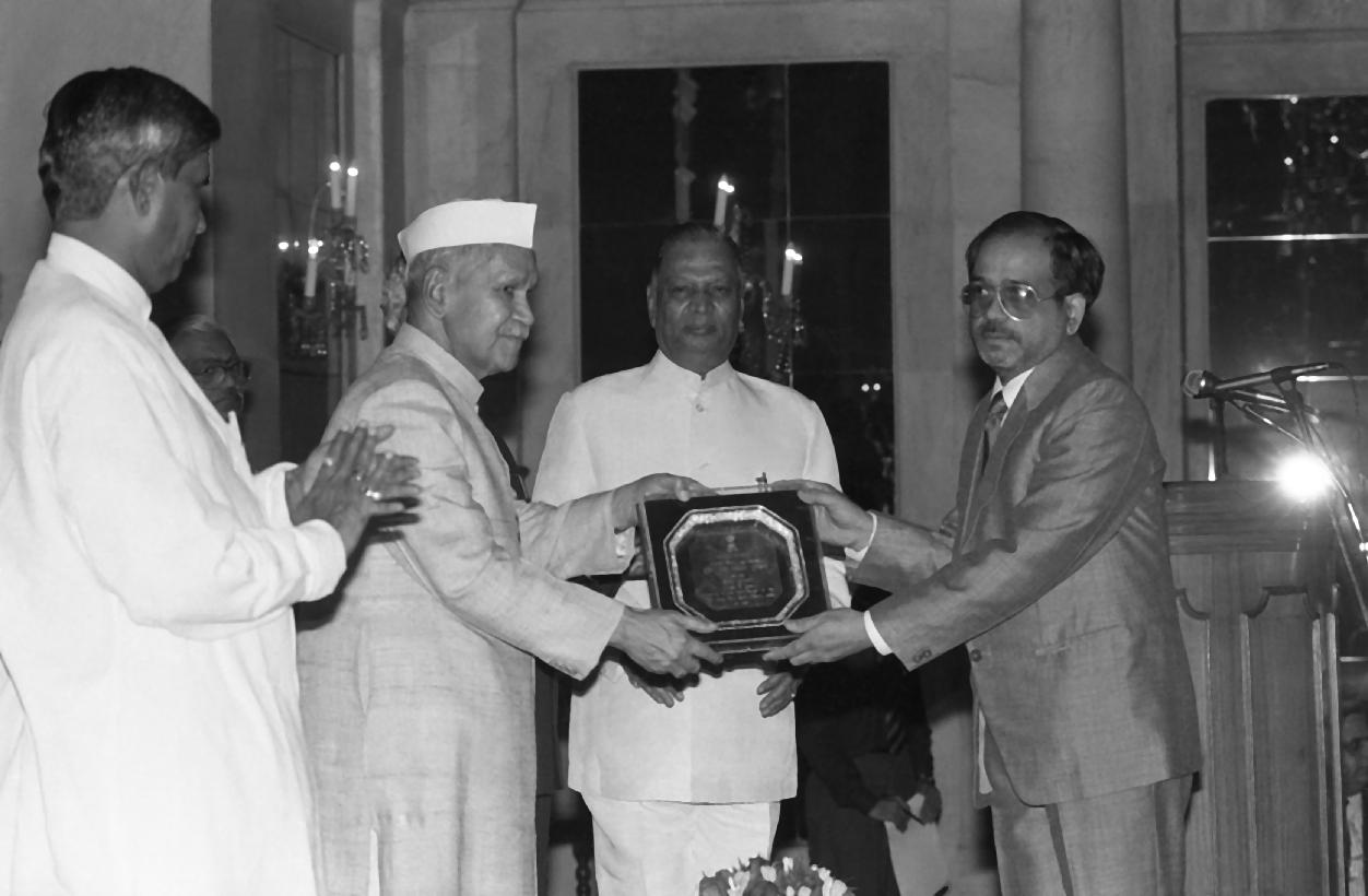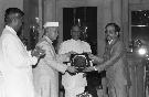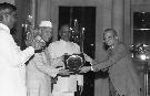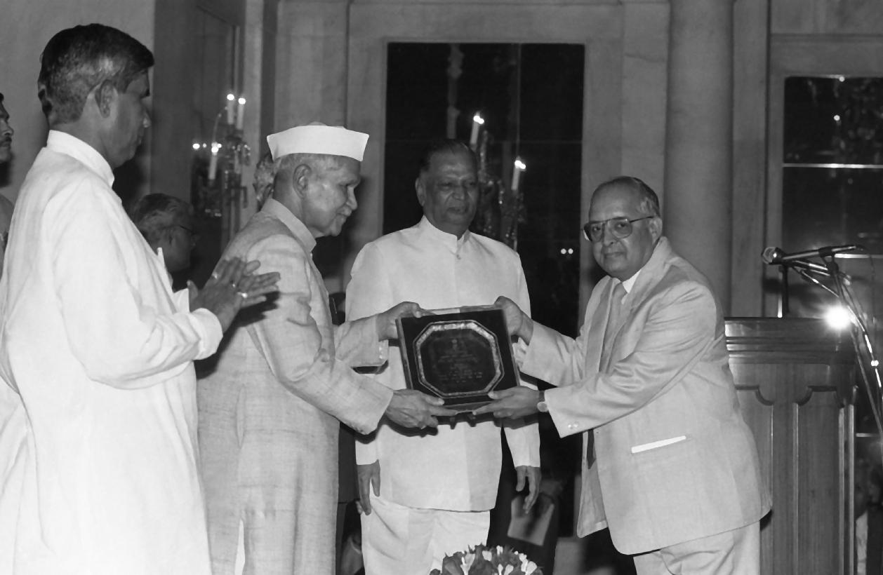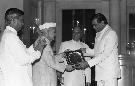 | Caption: | The President of India, Dr. Shankar Dayal Sharma presenting the Indira Gandhi Rajbhasha Awards 1991-92 and 1992-93 at Rashtrapati Bhavan in New Delhi on November 07, 1994. |