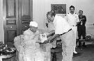| Caption: | The President of India, Dr. Shankar Dayal Sharma receiving a copy of the book "Sakhtiyat and Mashriqi Sheriyat" of Prof. Gopi Chand Narang at Rashtrapati Bhavan in New Delhi on June 13, 1994. |