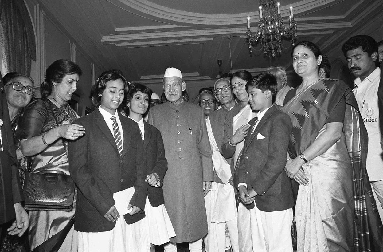 | Caption: | The President of India, Dr. Shankar Dayal Sharma presenting National Awards for Child Welfare for the year 1993 at Rashtrapati Bhavan in New Delhi on March 01, 1994. |