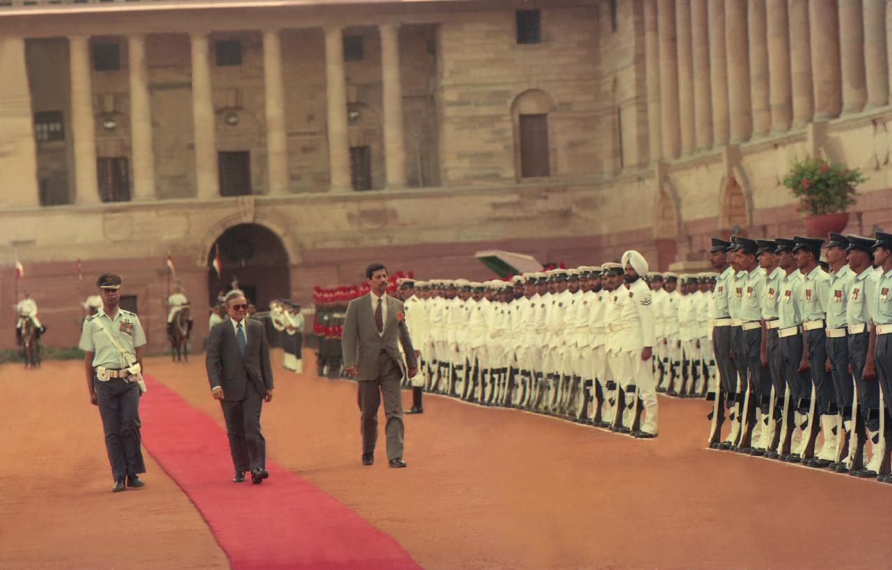 | Caption: | The President of India, Dr. Shankar Dayal Sharma receiving H.E. Mr. Maumoon Abdul Gayoom, President of the Republic of Maldives and Mrs. Nasreena M.A. Gayoom at their Ceremonial Reception at Rashtrapati Bhavan in New Delhi on March 21, 1994. |