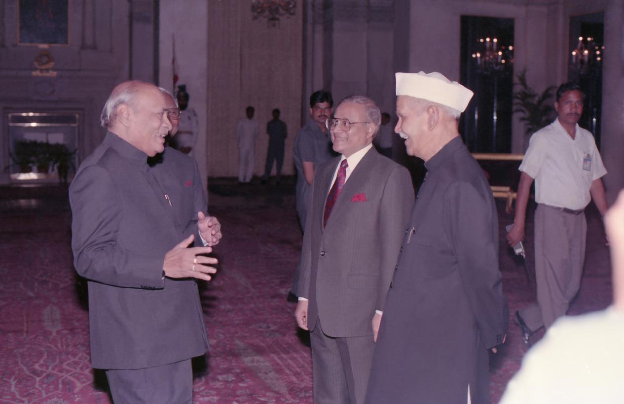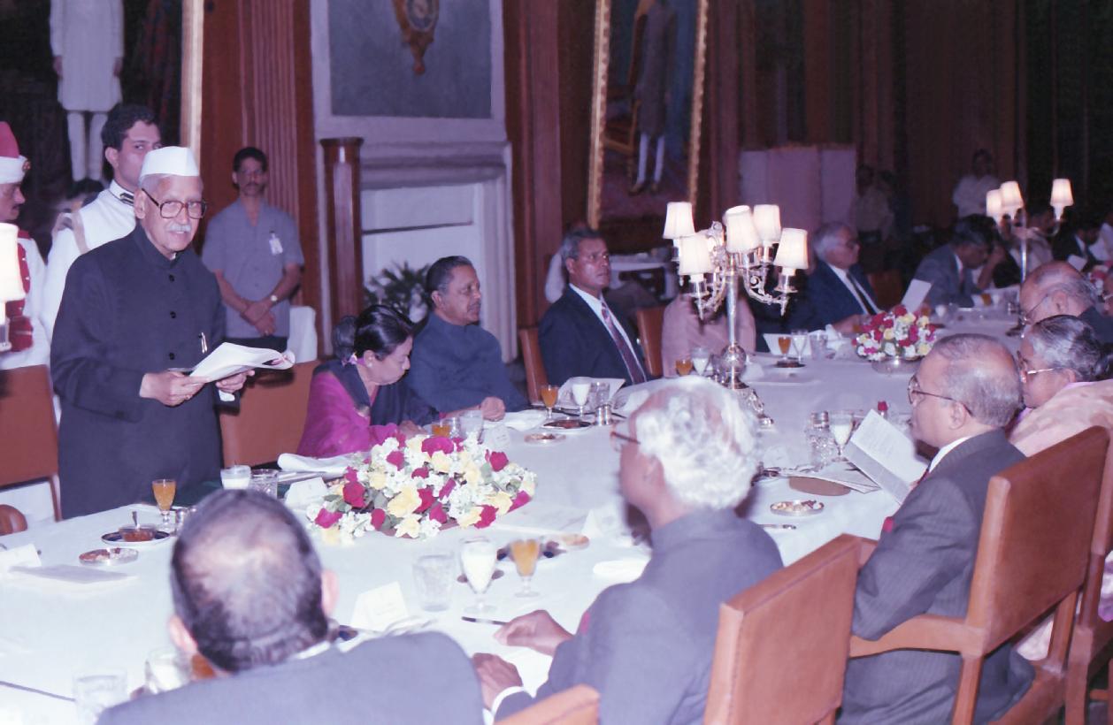 | Caption: | The President of India, Dr. Shankar Dayal Sharma hosting Banquet in honour of H.E. Mr. Maumoon Abdul Gayoom, President of the Republic of Maldives and Mrs. Nasreena M.A. Gayoom at Rashtrapati Bhavan in New Delhi on March 21, 1994. |