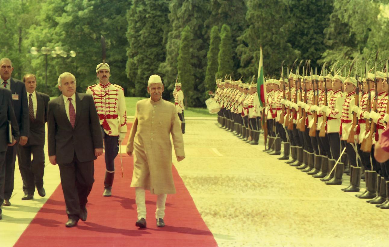 | Caption: | The President of India, Dr. Shankar Dayal Sharma being received by the President of Bulgaria, Mr. Zhelyu Zhelev, at his Ceremonial Reception, at Boyana, Sofia, in Bulgaria on May 26, 1994. |
