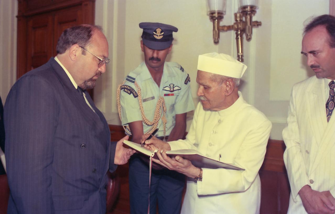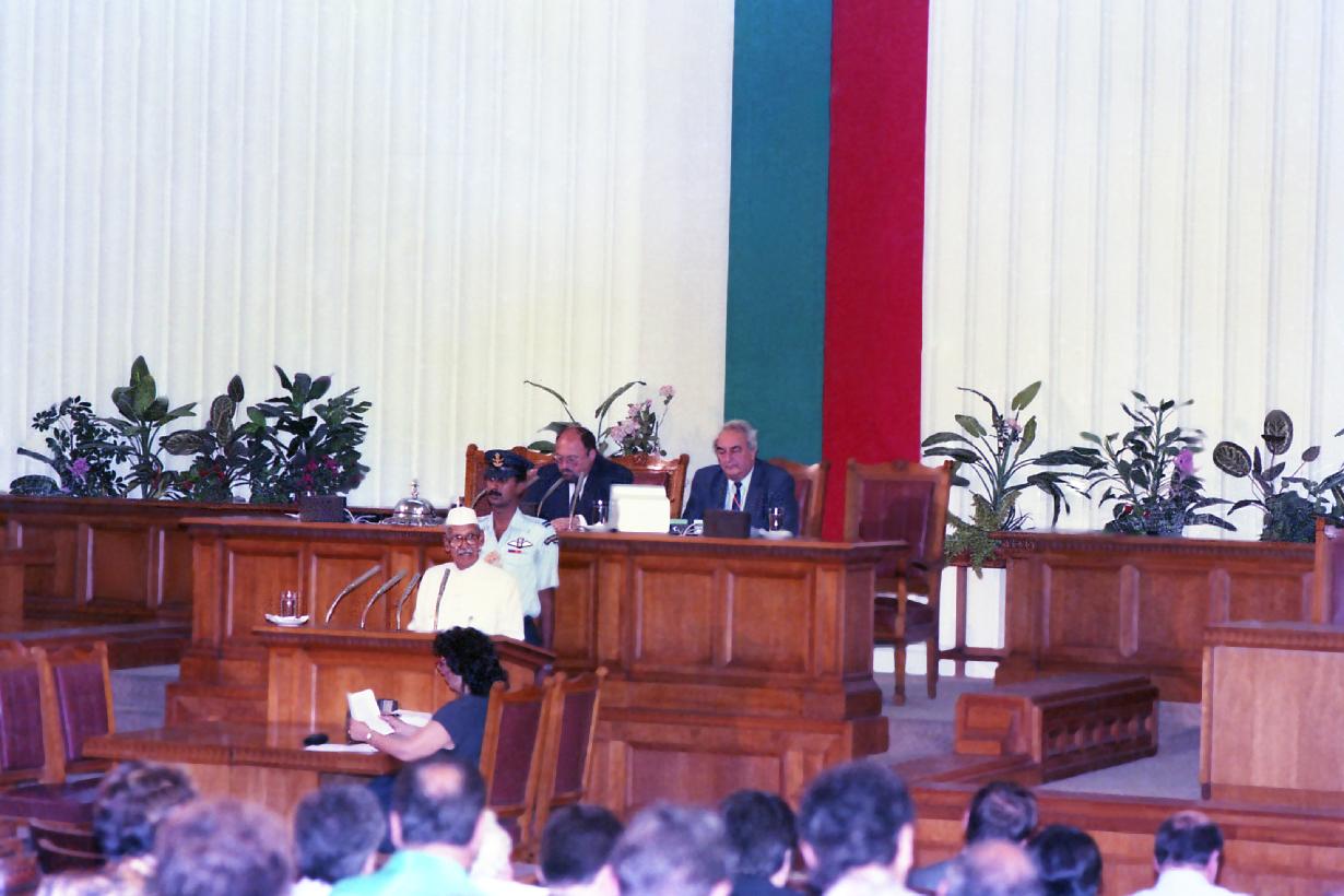 | Caption: | The President of India, Dr. Shankar Dayal Sharma meeting the President of National Assembly, Mr. Alexander Yordanov and addressing the members of Assembly, at Sofia, in Bulgaria on May 27, 1994. |